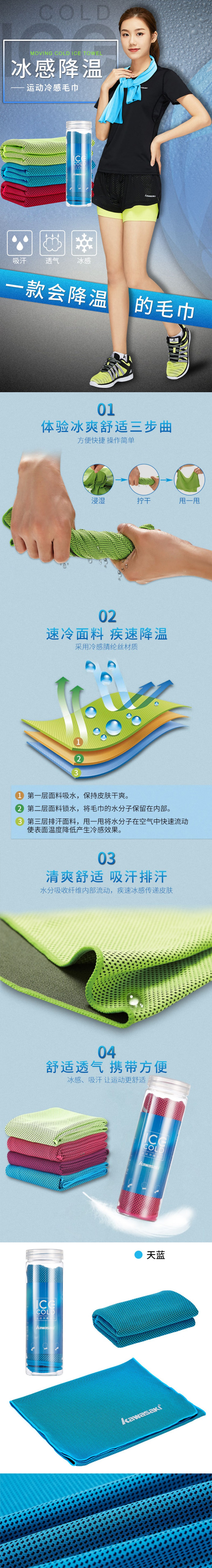 川崎KAWASAKI冷感冰凉运动毛巾健身凉爽降温消暑吸汗速干冰感毛巾KTW-860(单位:条) 天蓝色