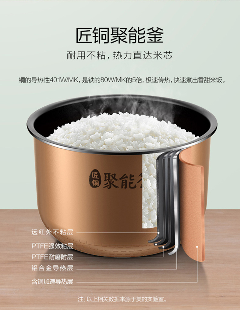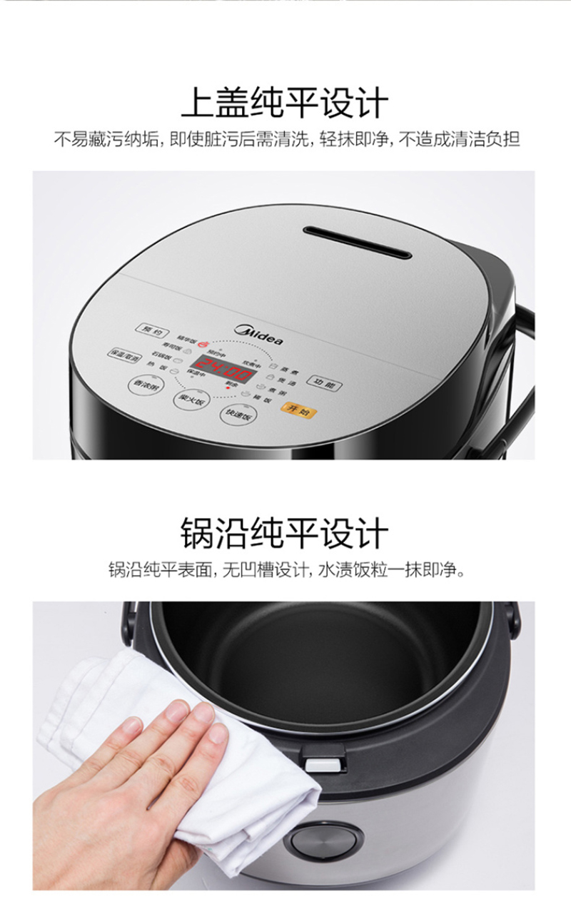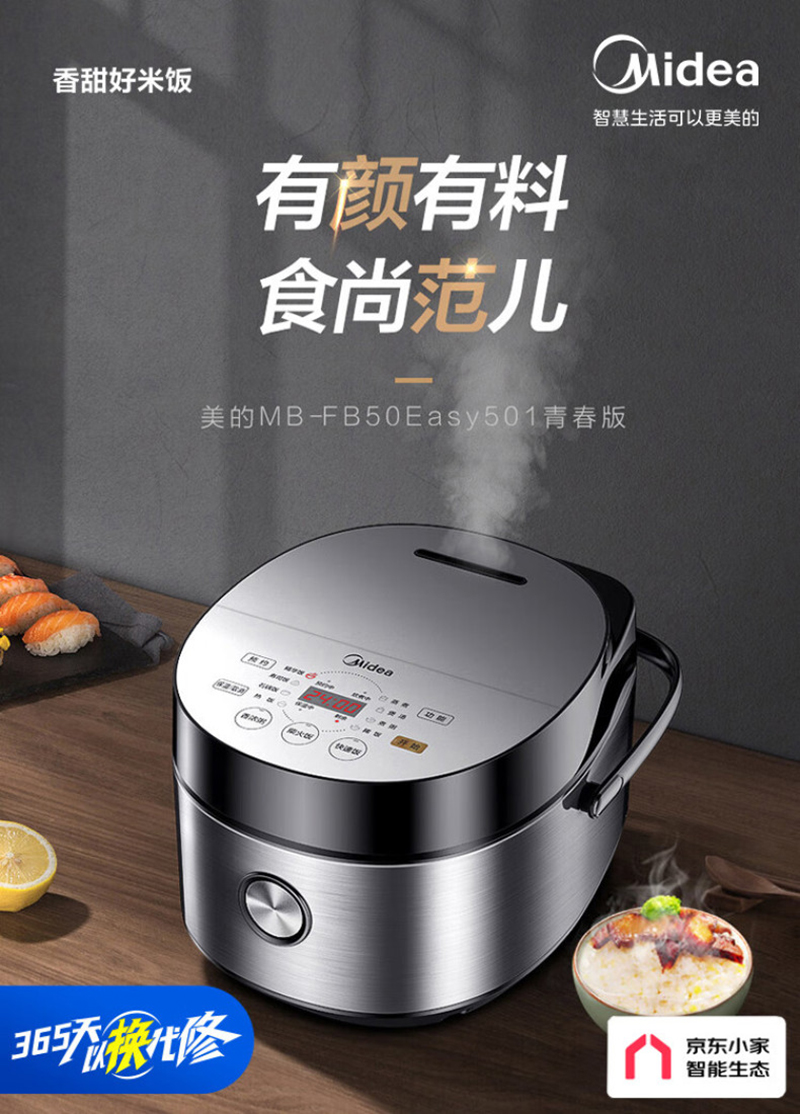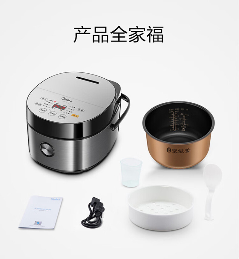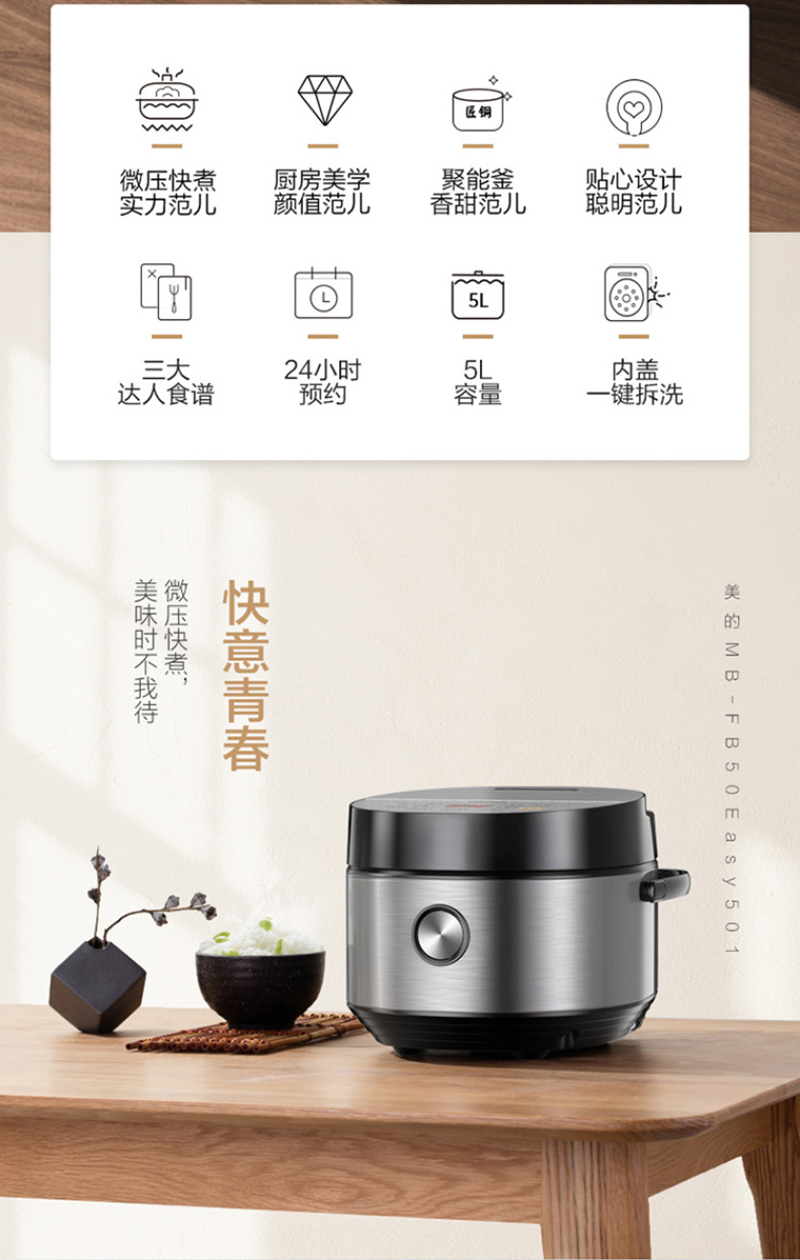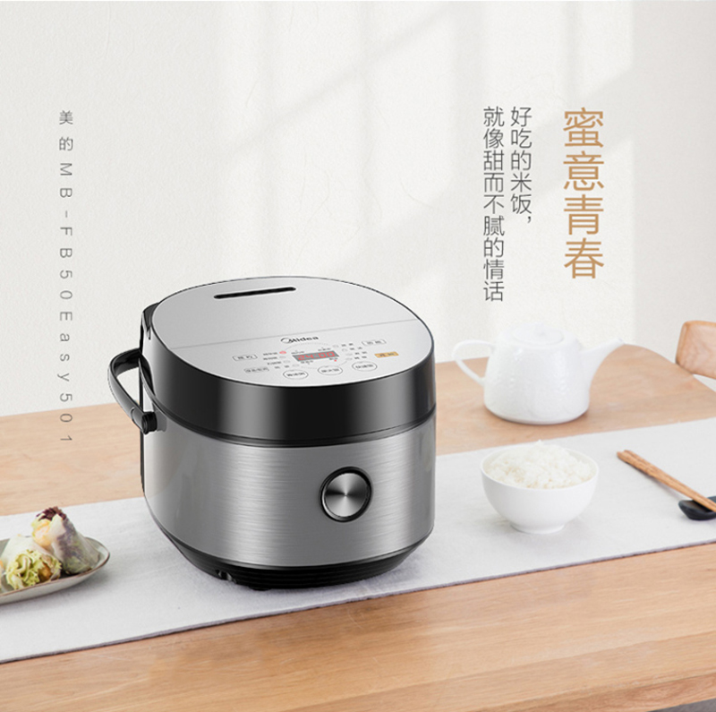 美的(Midea)电饭煲5升 家用 匠铜聚能釜 一键柴火饭FB50Easy501智能 【匀热氧化盘 微压快煮】FB50Easy501 银色