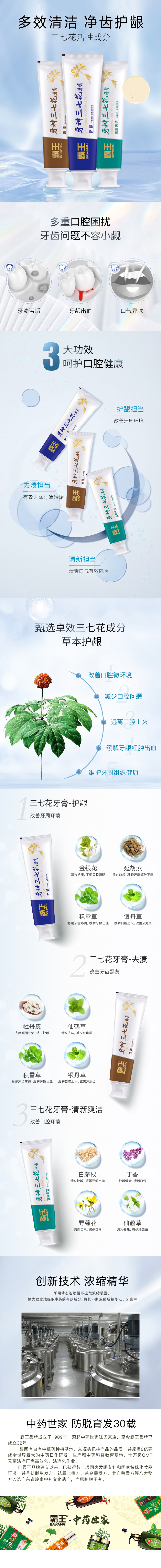 霸王(BAWANG)牙神三七花牙膏(护龈)10101001142 180g(单位:支) 蓝色