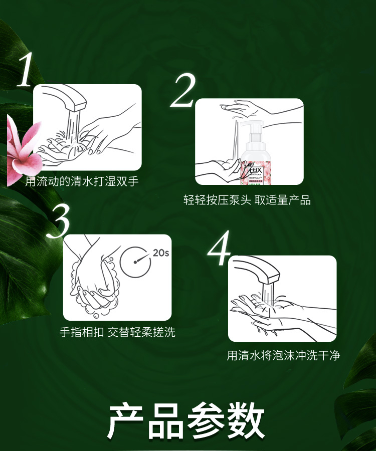 联合利华力士抑菌泡泡洗手液沁润蕊粉樱花香225ML 粉色
