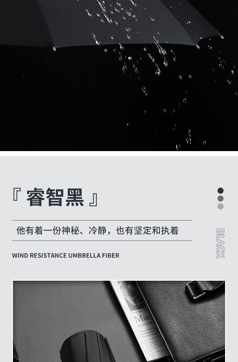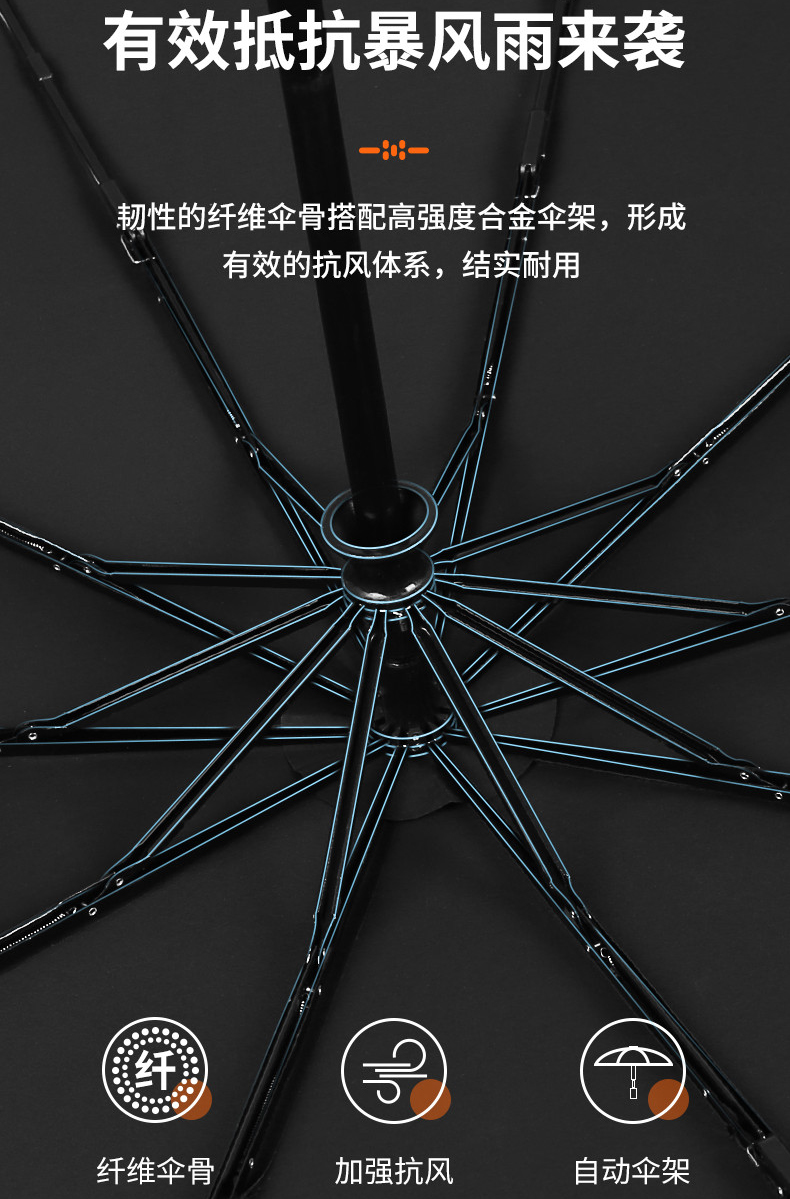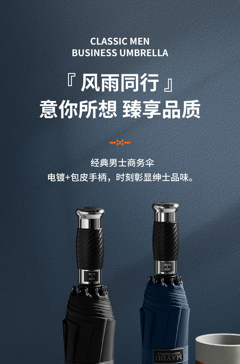 美度男士商务伞全自动折叠伞大号M3385 63.5cm*10K/把 黑色