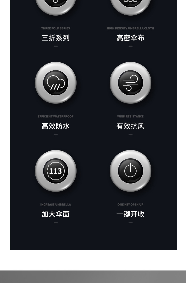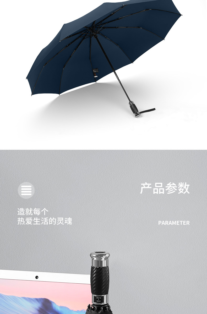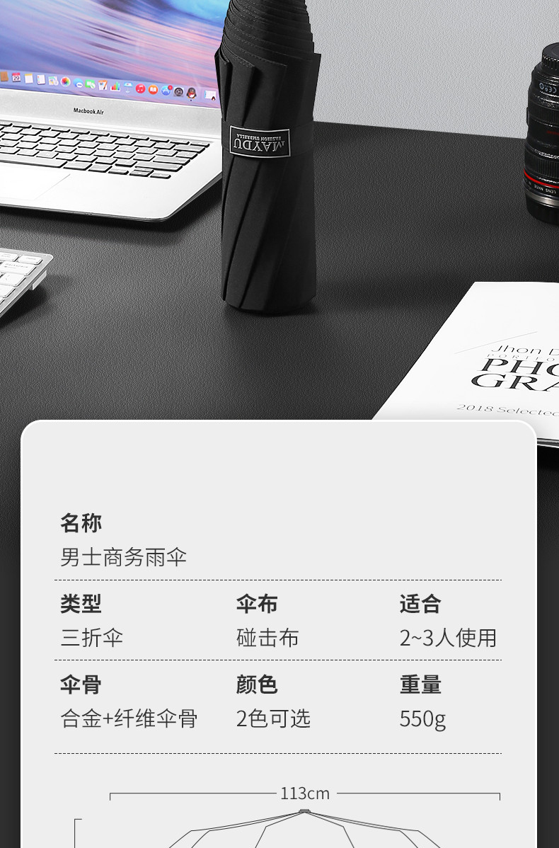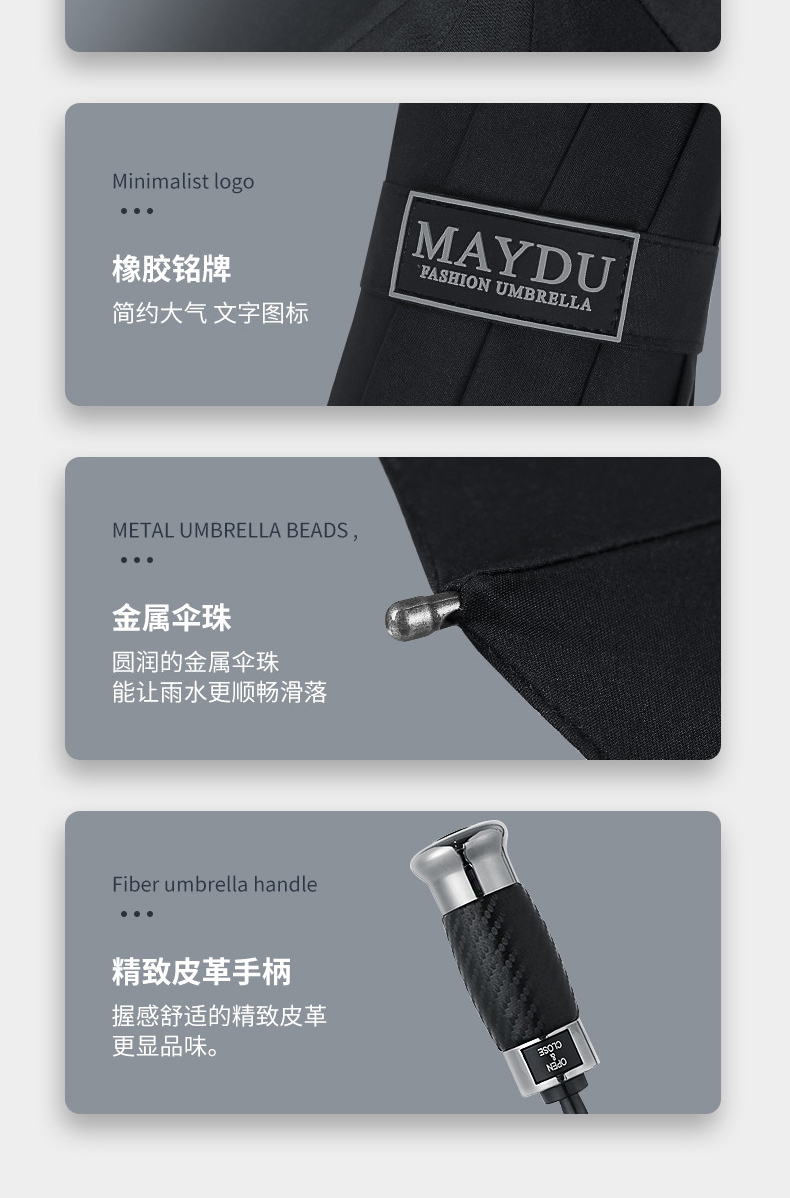 美度男士商务伞全自动折叠伞大号M3385 63.5cm*10K/把 黑色