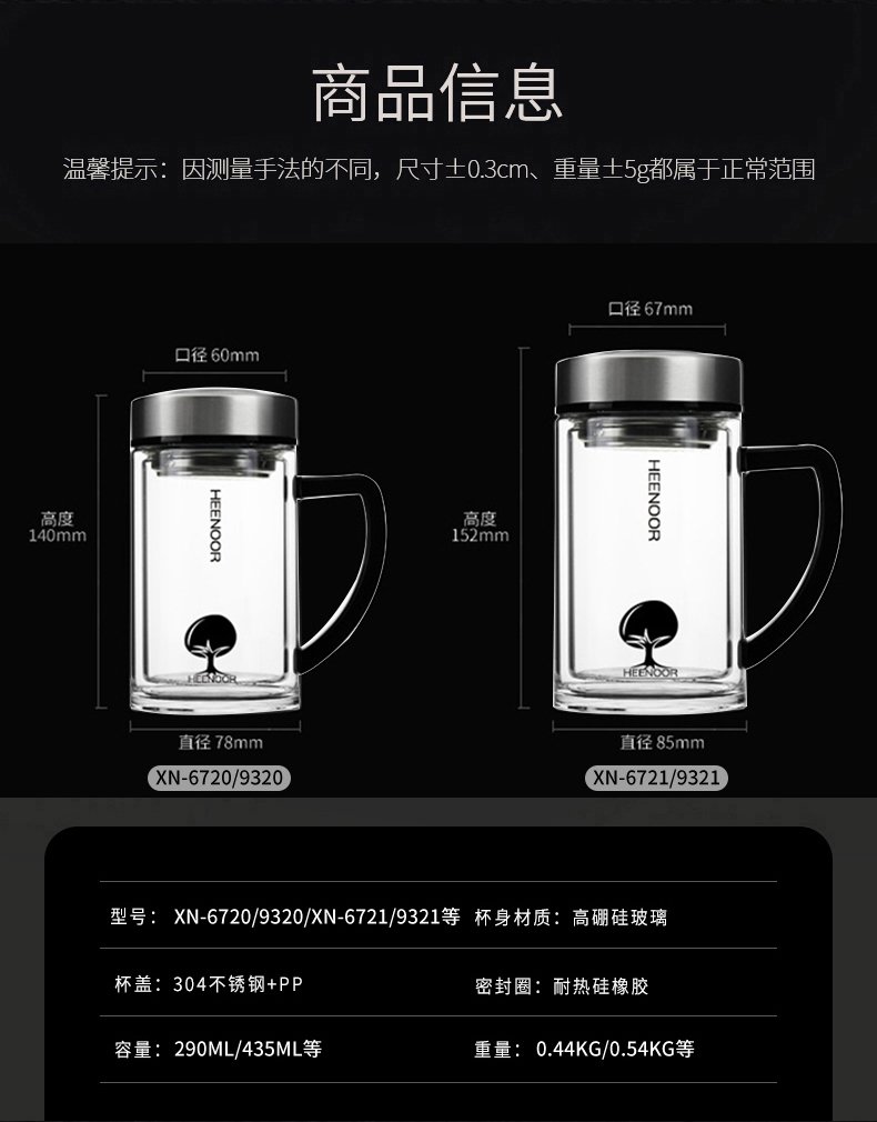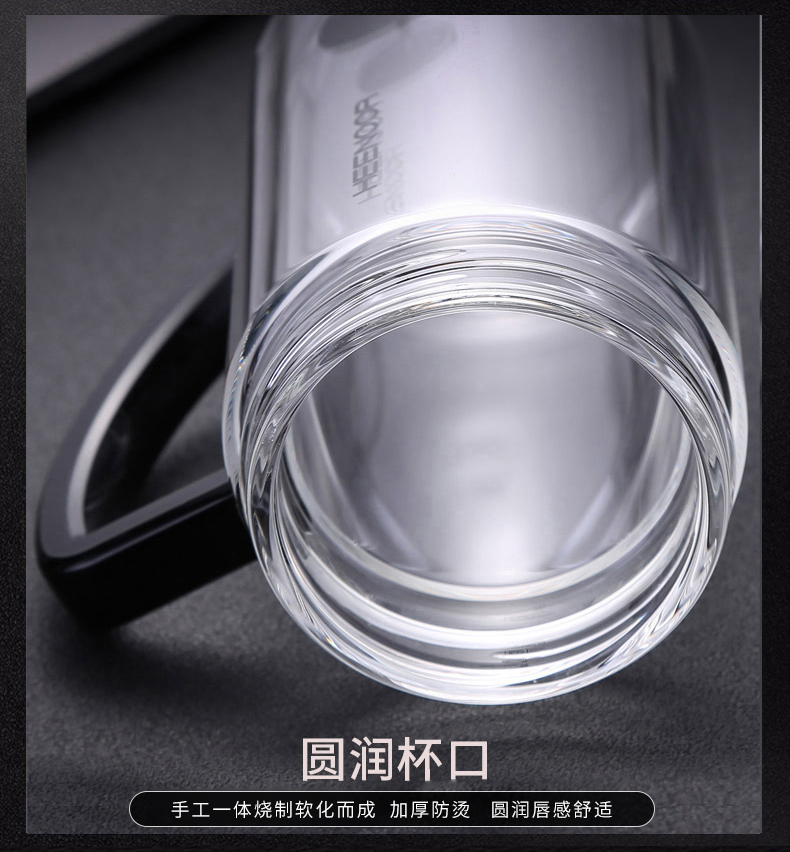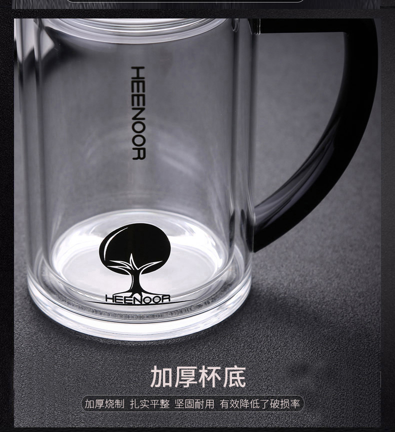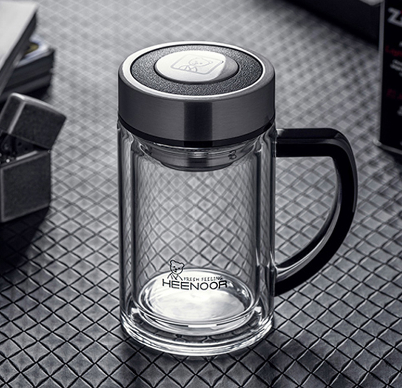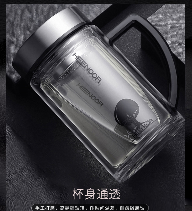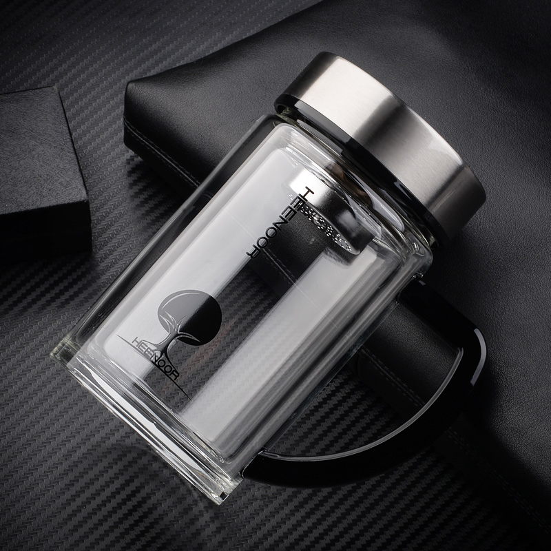 希诺(HEENOOR)双层泡茶玻璃办公杯 XN-6720 290ml(单位:个) 不锈钢色