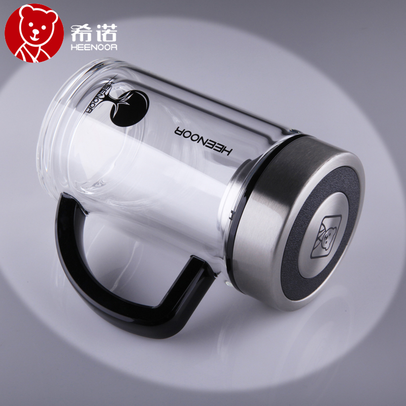 希诺(HEENOOR)双层办公泡茶玻璃杯 XN-6721 435ml(单位:个) 不锈钢色