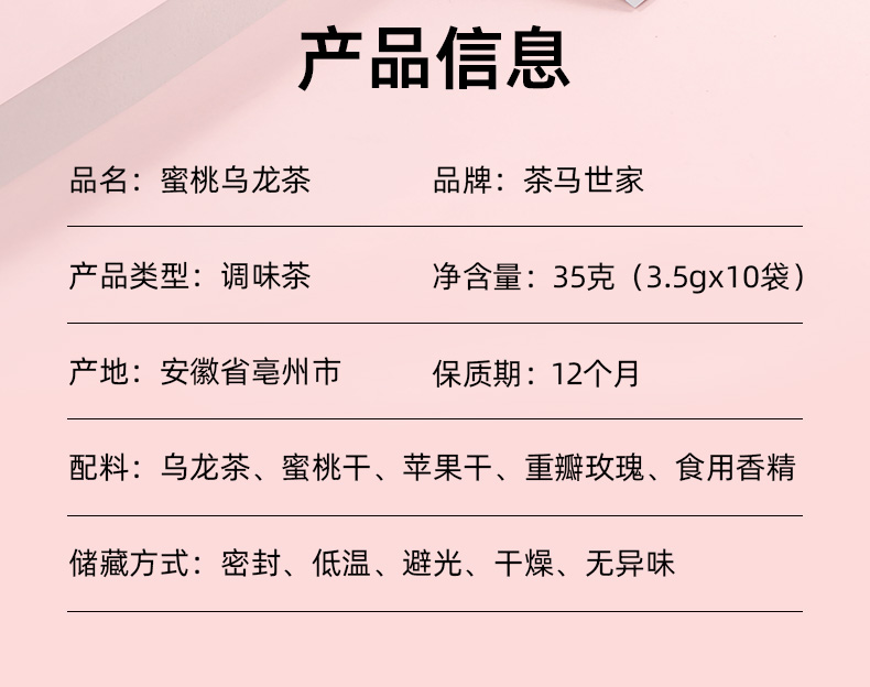 茶马世家蜜桃乌龙茶35g单位:盒 粉色