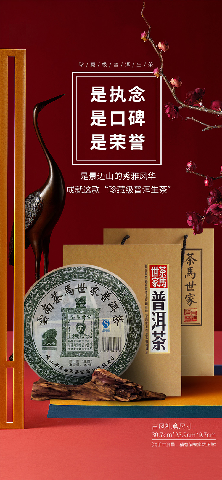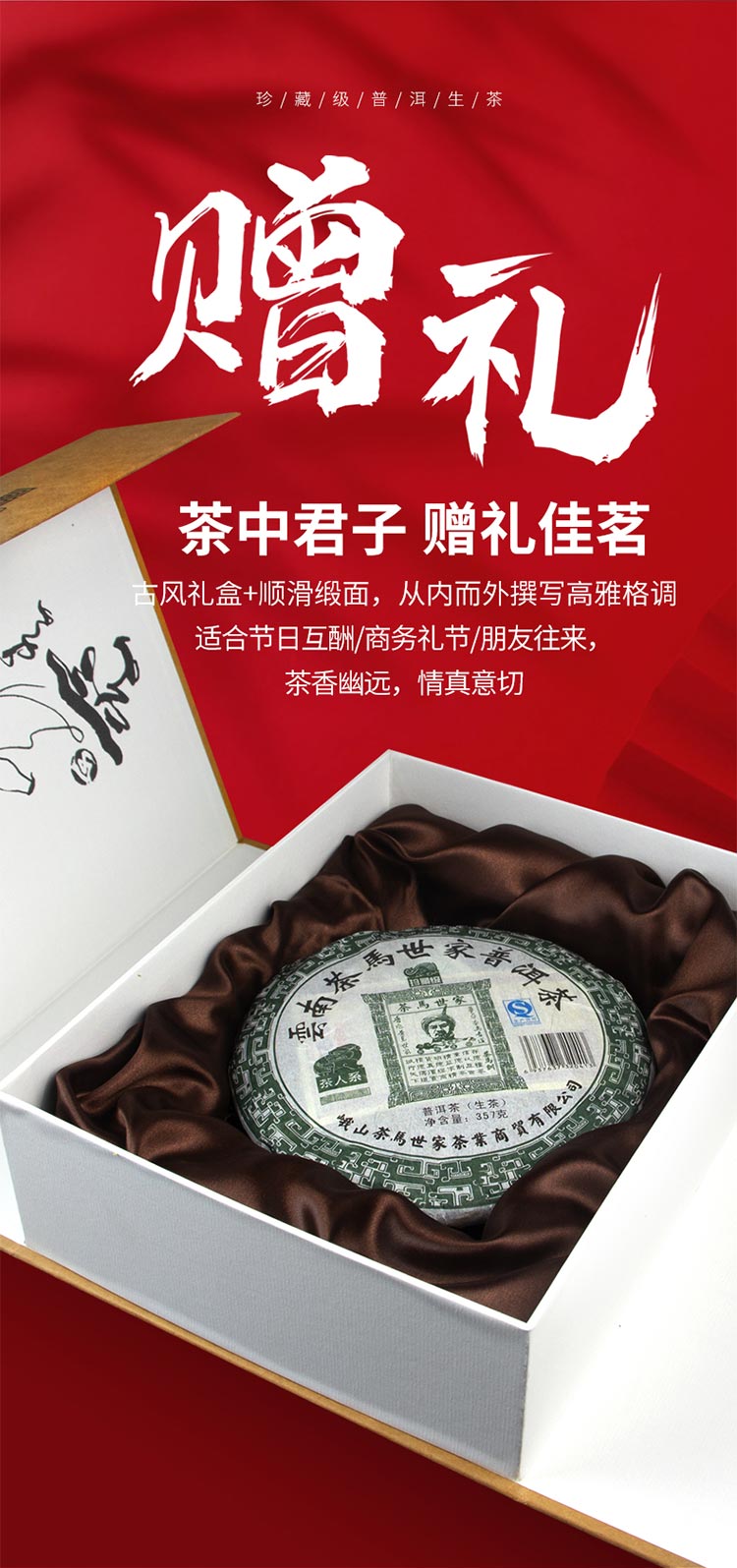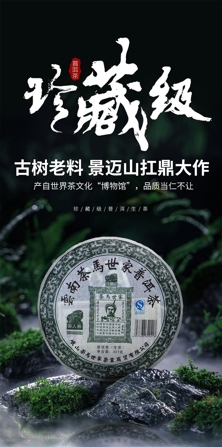 茶马世家 普洱茶生茶珍藏高端古风礼盒装2011年陈年古树云南景迈早春茶叶 357g 卡其色