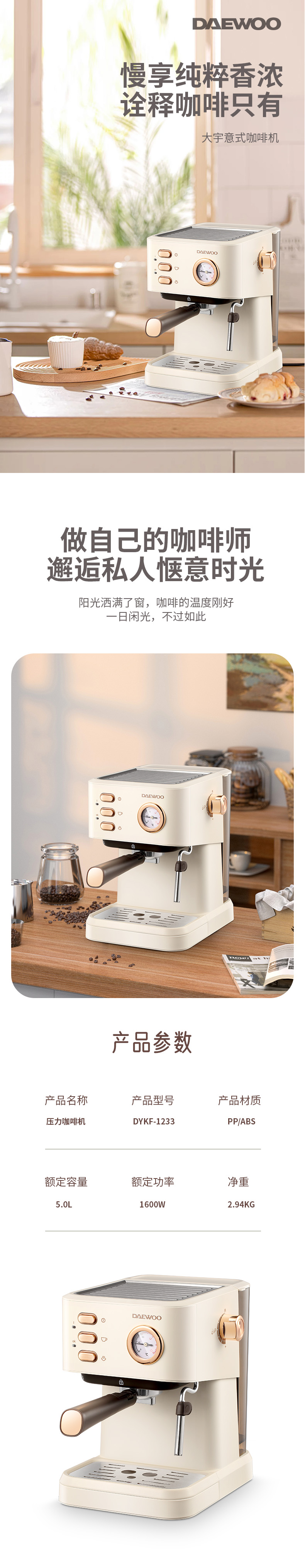 大宇(DAEWOO) 咖啡机 DYKF-1233 1050w(单位:台) 米白色