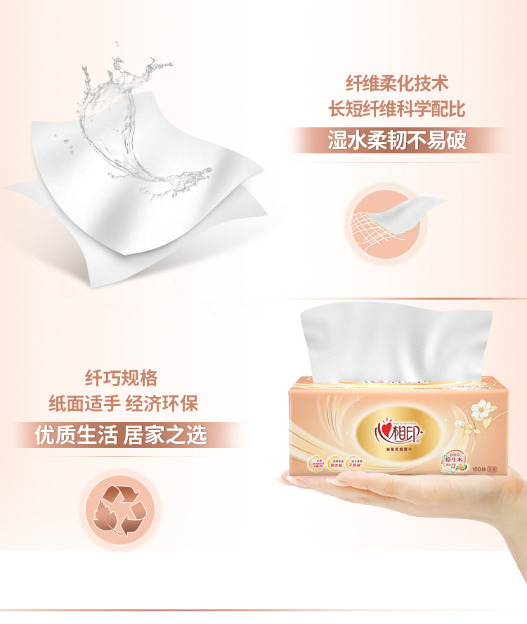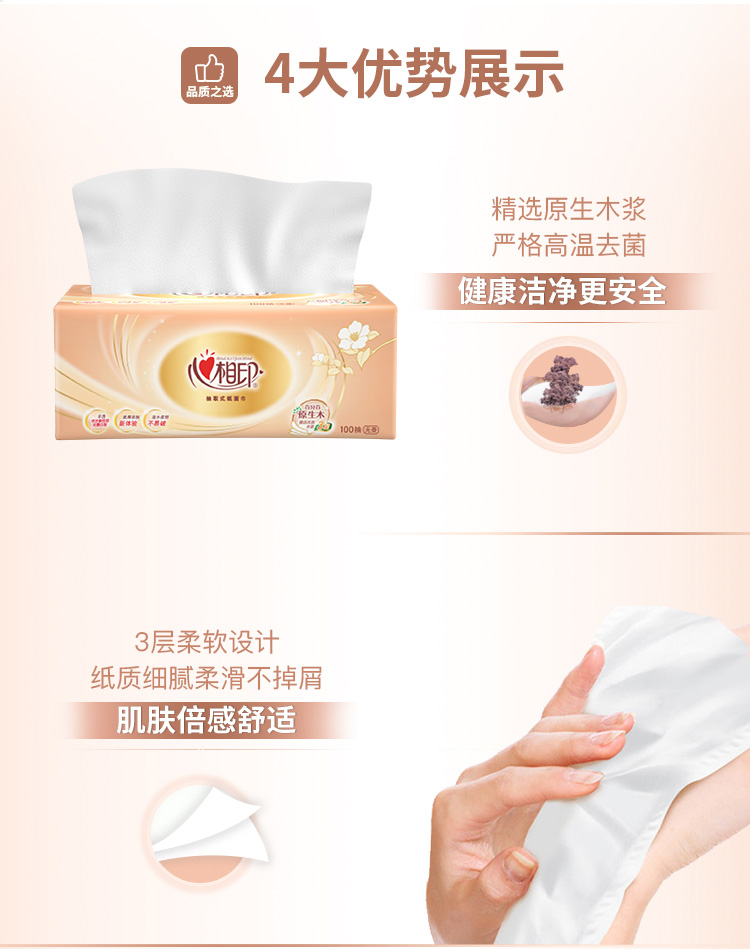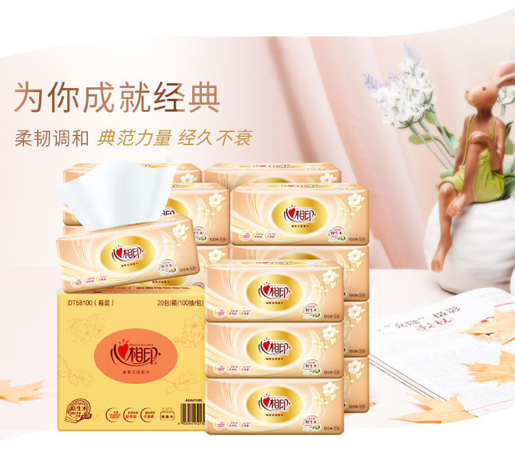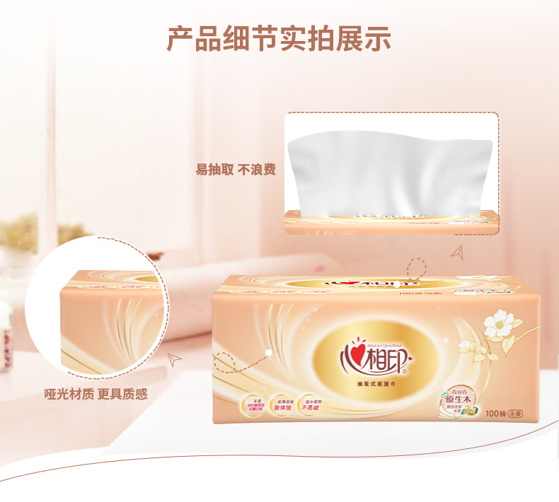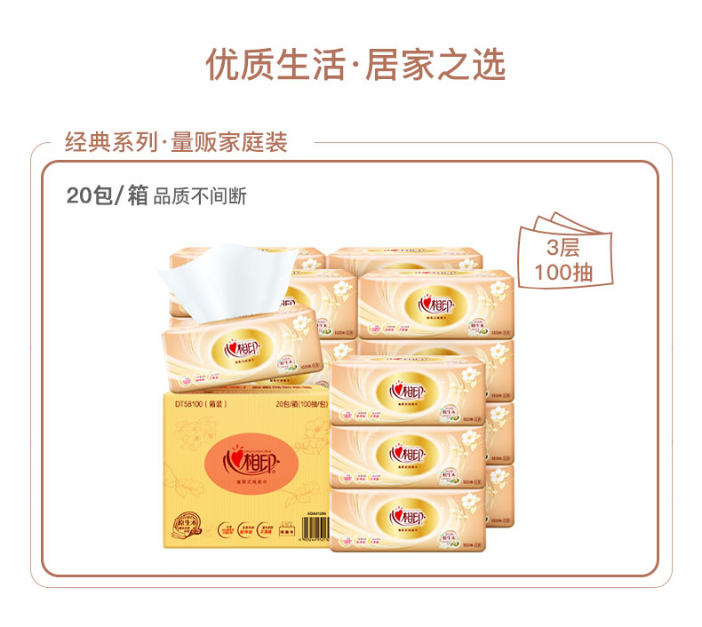 心相印(Mind Act Upon Mind) 抽纸 金装经典 20包(100抽/包) 橙色(单位:箱)