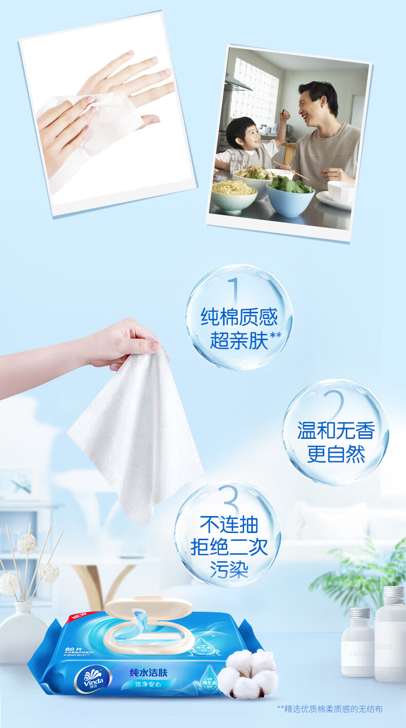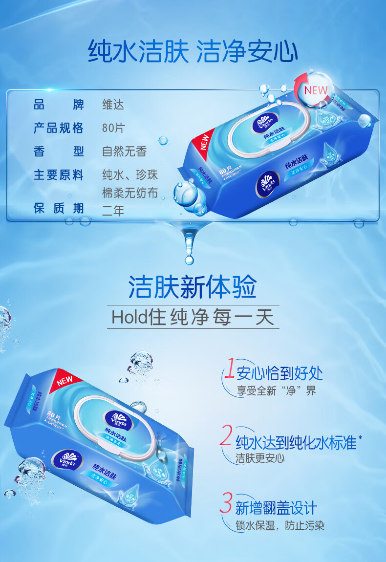 维达纯水湿巾湿纸巾3包240片 DXTWD137(单位:袋) 白色