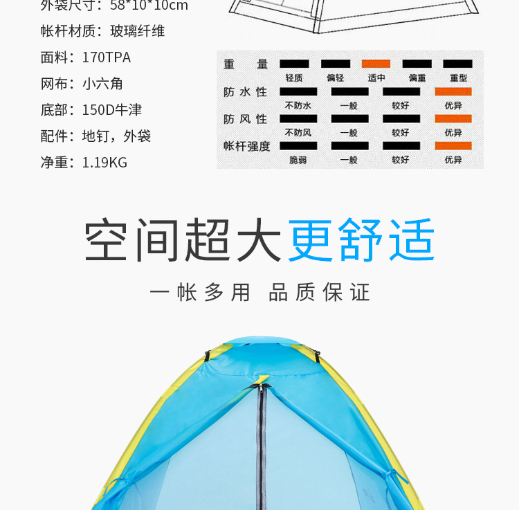 凯亚仕双人户外休闲帐篷KYS-103(单位:个) 深蓝色