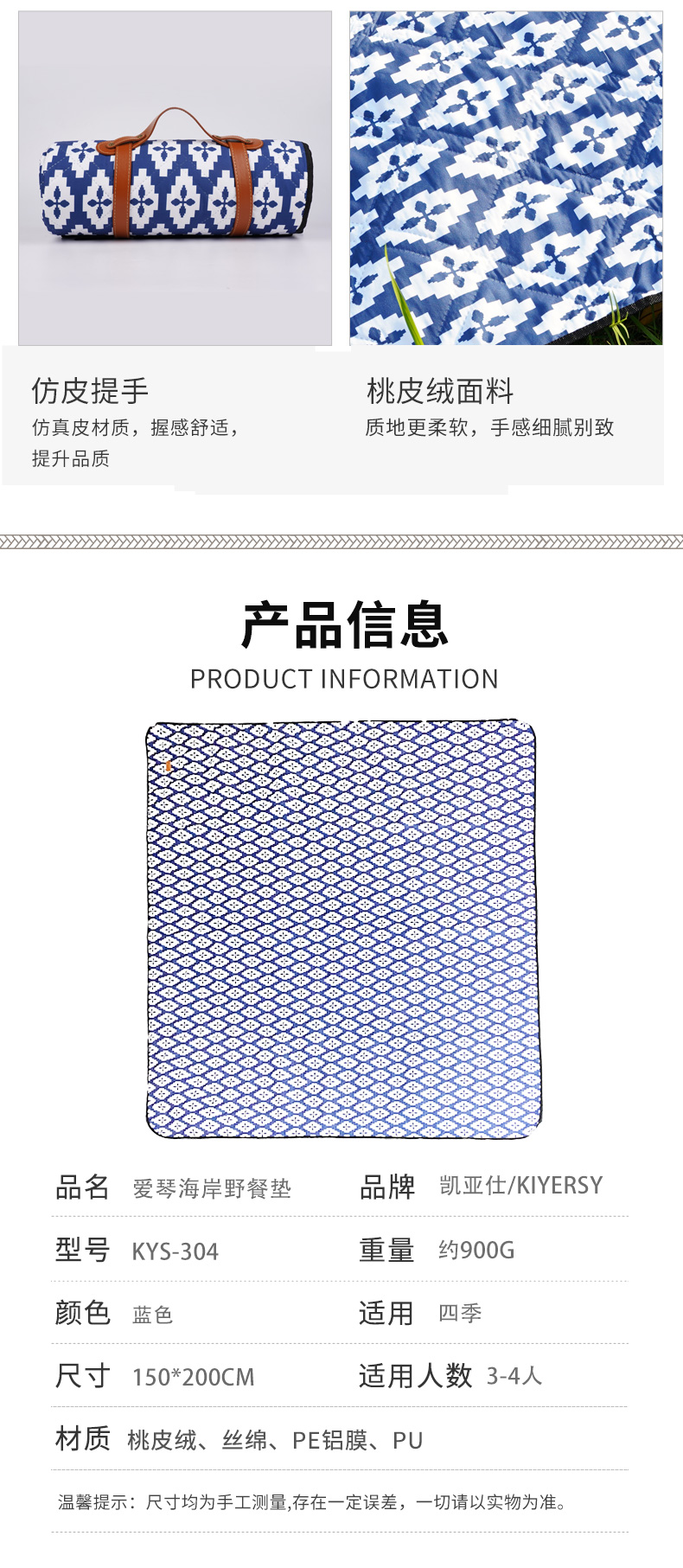凯亚仕爱琴海岸超声波野餐垫KYS-304(单位:1个) 深蓝色