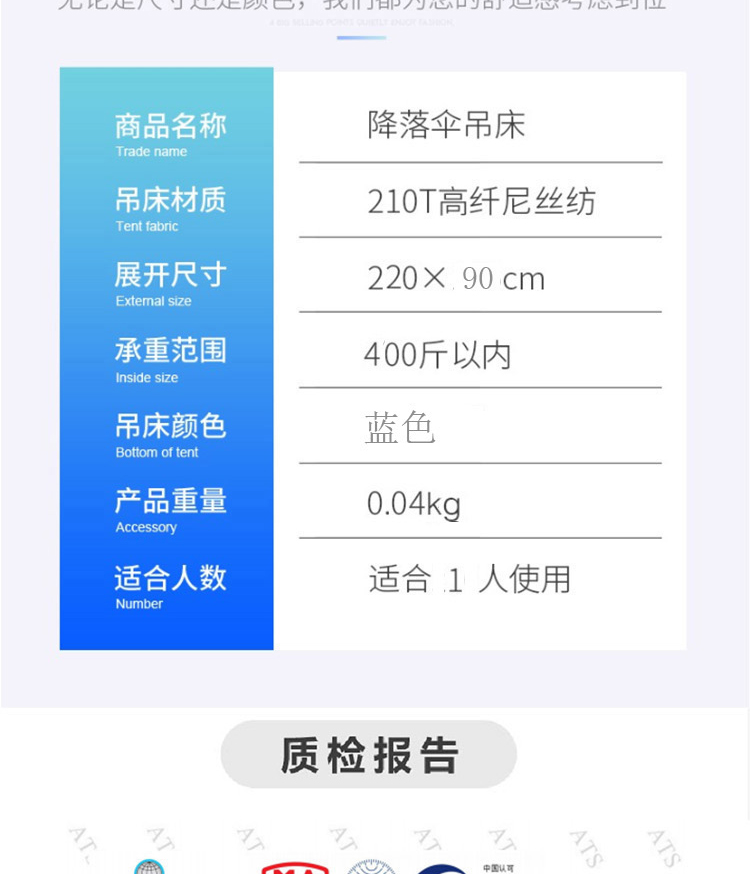 凯亚仕便携收纳吊床KYS-202(单位:1个) 深蓝色