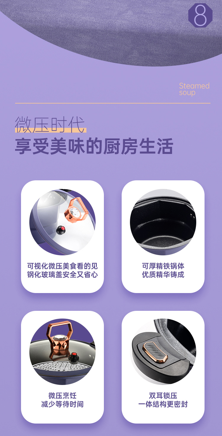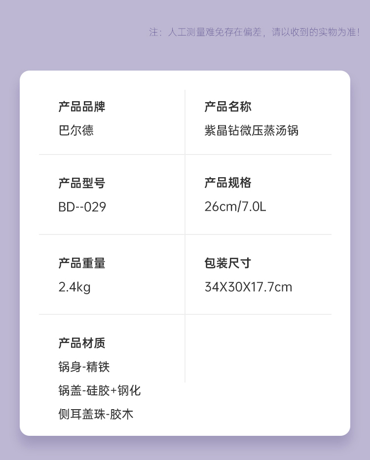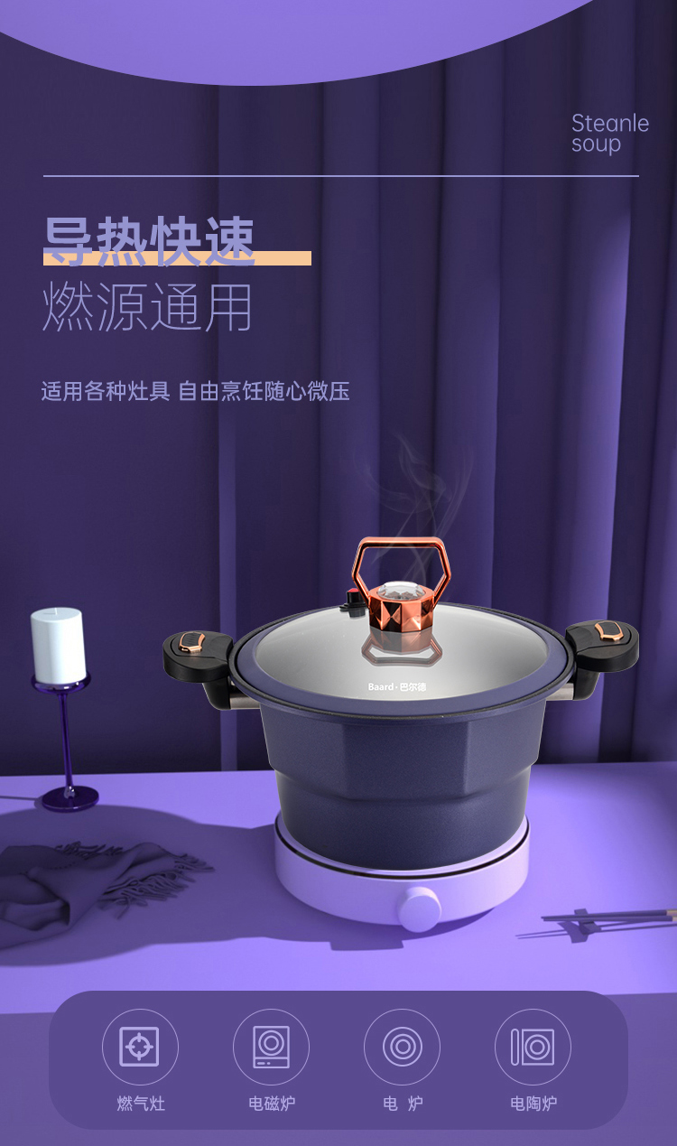 巴尔德 紫晶钻微压蒸汤锅BD-029(单位:套) 紫色