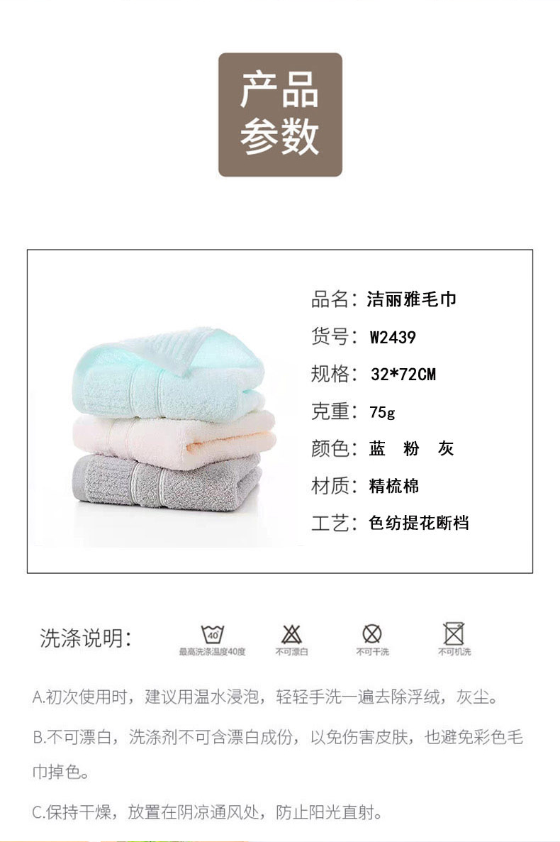洁丽雅 A类精梳棉毛巾两条装W2439(32*72cm)盒装(单位:盒) 混色