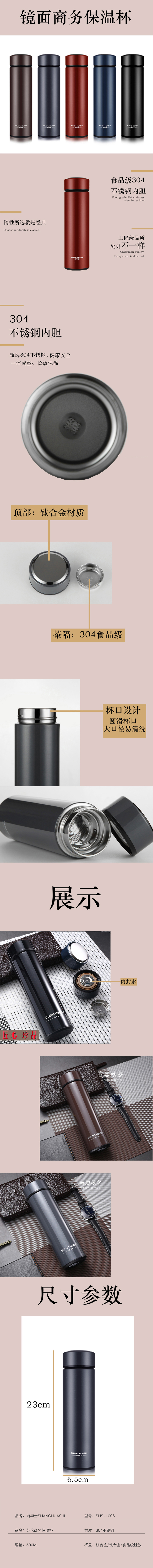 尚华士(SHANG HUASHI)英伦商务保温杯 不锈钢水杯 SHS-1006 500ml 黑色(单位:个) 黑色