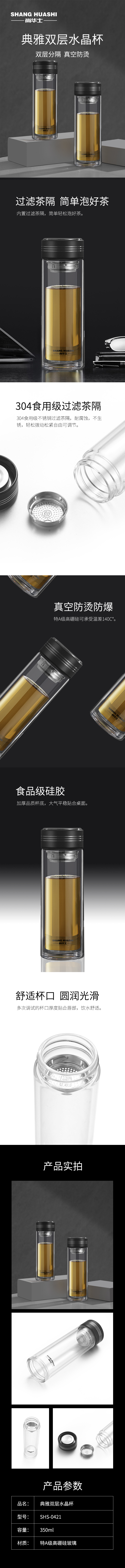 尚华士(SHANG HUASHI)典雅双层水晶杯SHS-0421 350ml(单位:个) 黑色