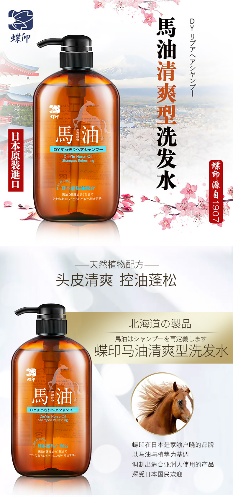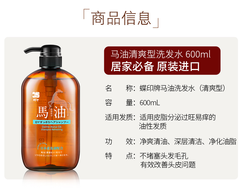 蝶印 马油洗发水(清爽型)600mL(计价单位:瓶) 炫橙色