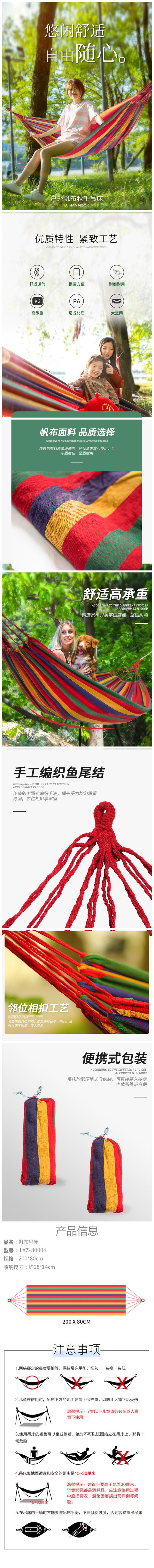 狼行者 户外野营单人绑绳帆布吊床 LXZ-80004 红色