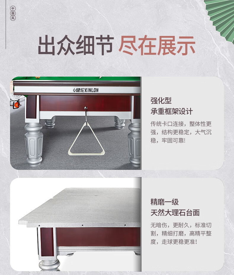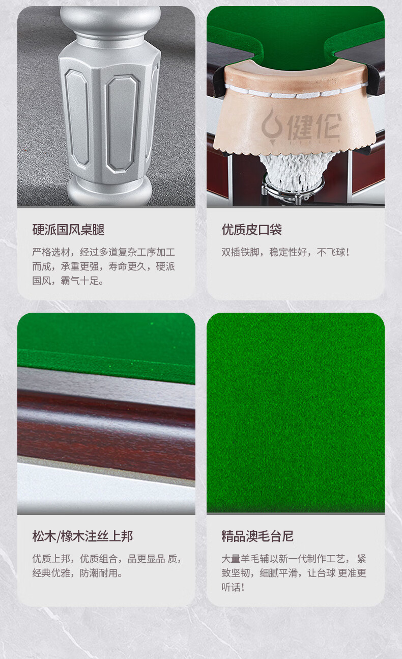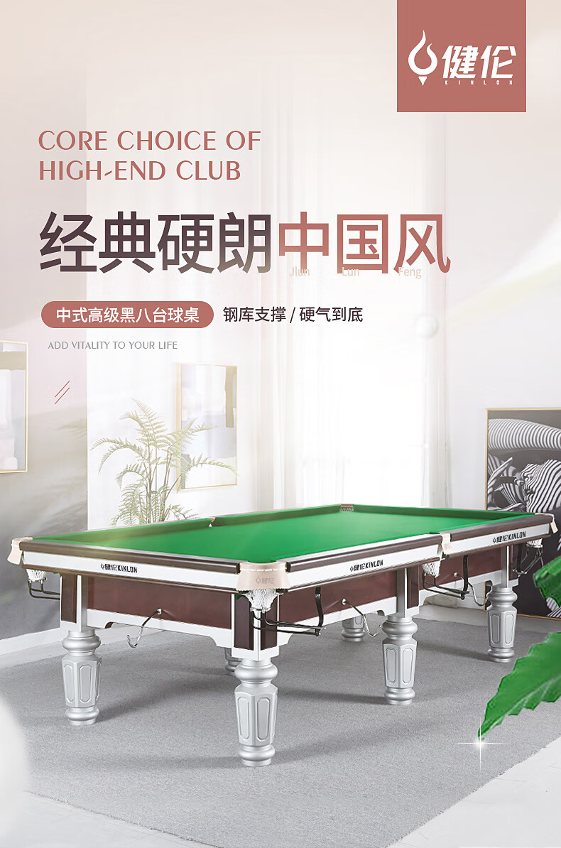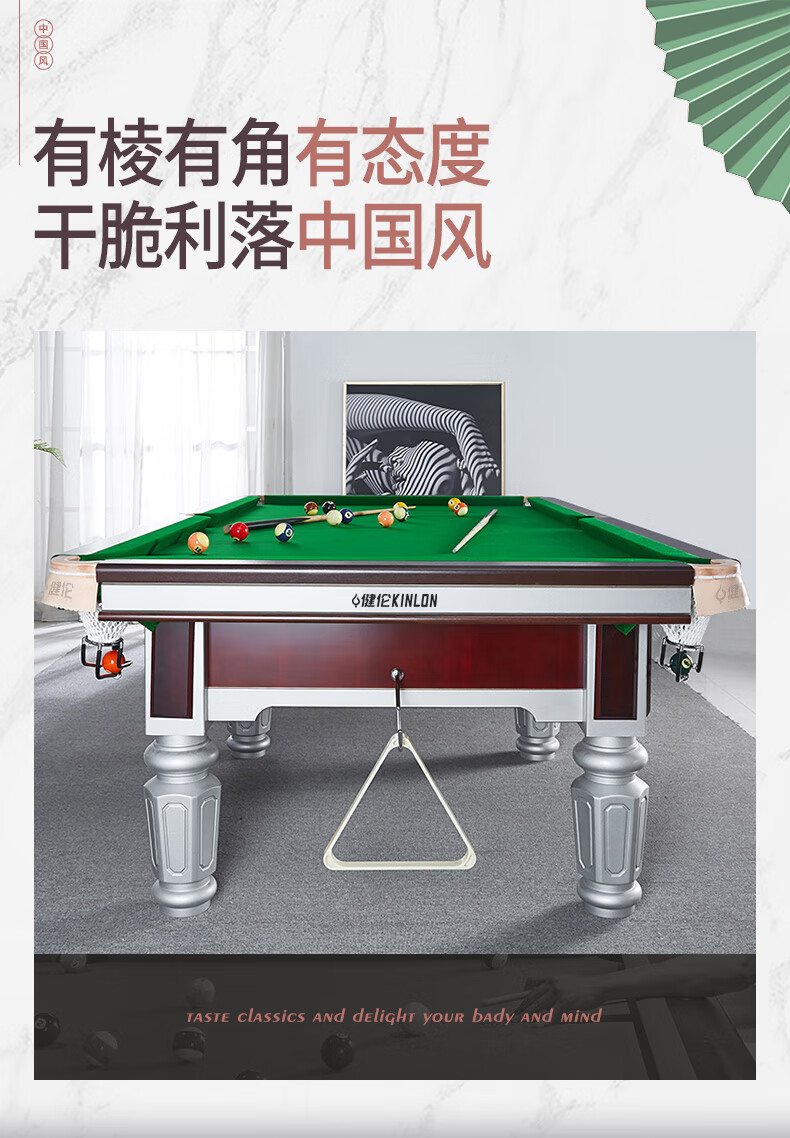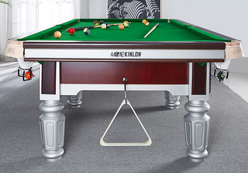 健伦(JEEANLEAN)JL-ZQT-A4S 台球桌 钢库银腿 标准九尺家用高端美式黑八 采购款 军绿色