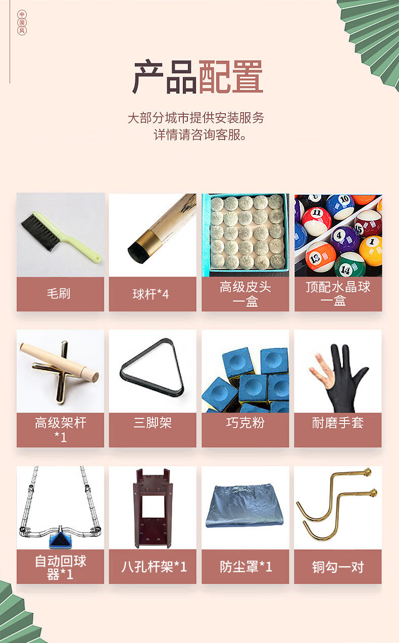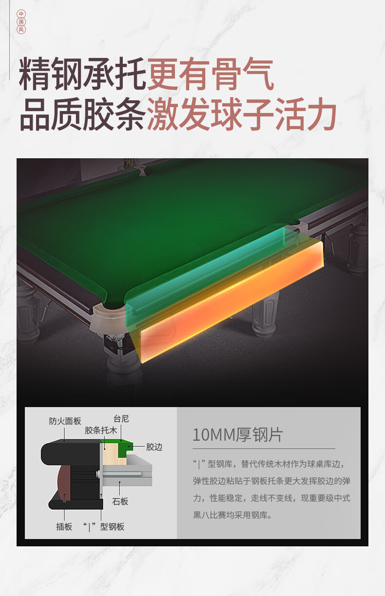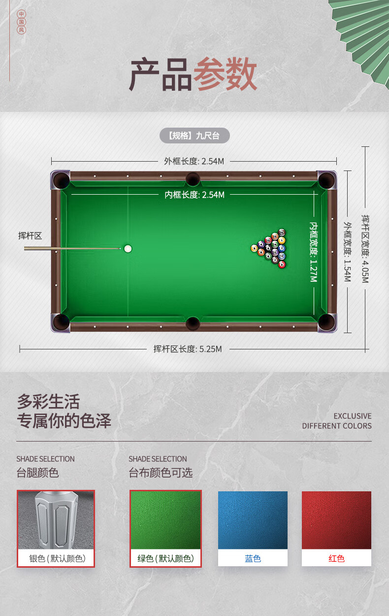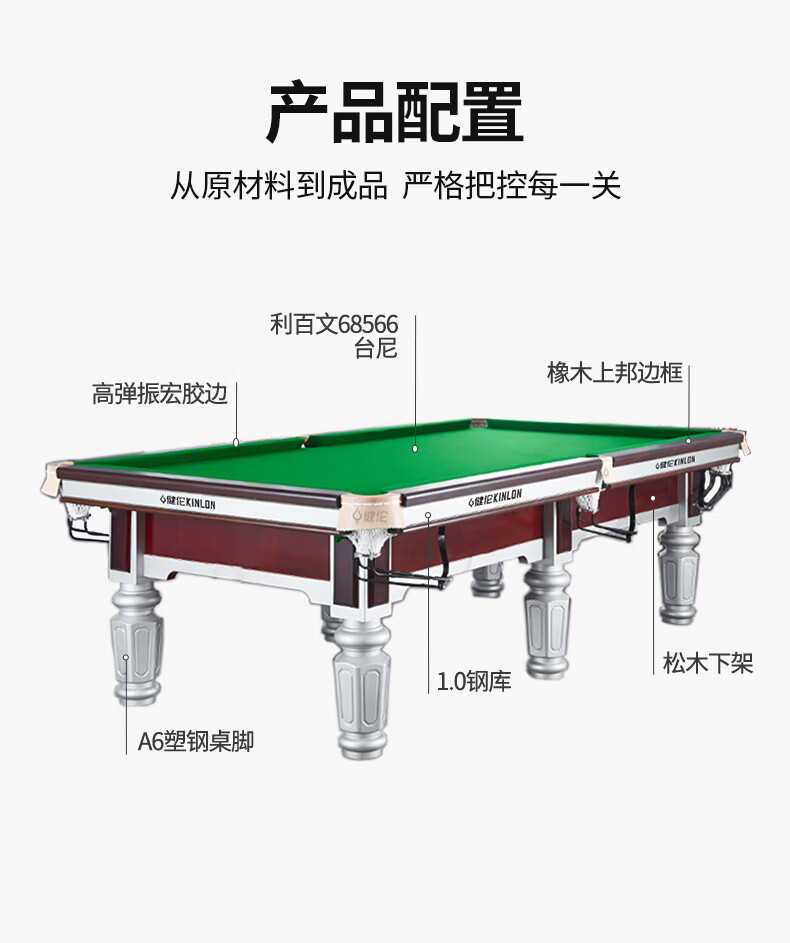 健伦(JEEANLEAN)JL-ZQT-A4S 台球桌 钢库银腿 标准九尺家用高端美式黑八 采购款 军绿色
