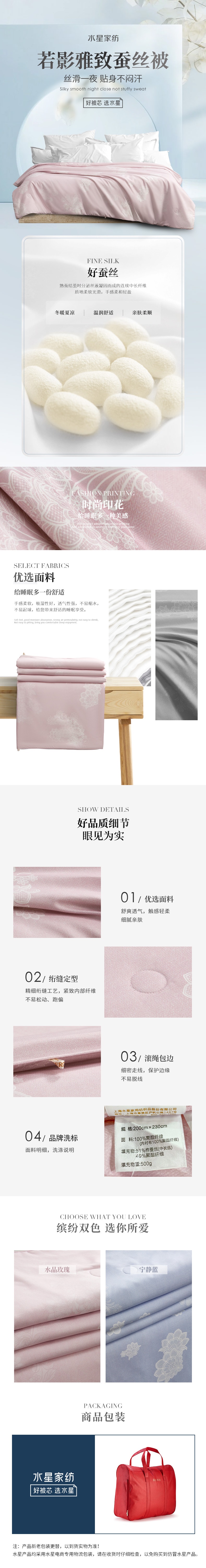 水星家纺若影雅致蚕丝被(单位:条) 水晶玫瑰色