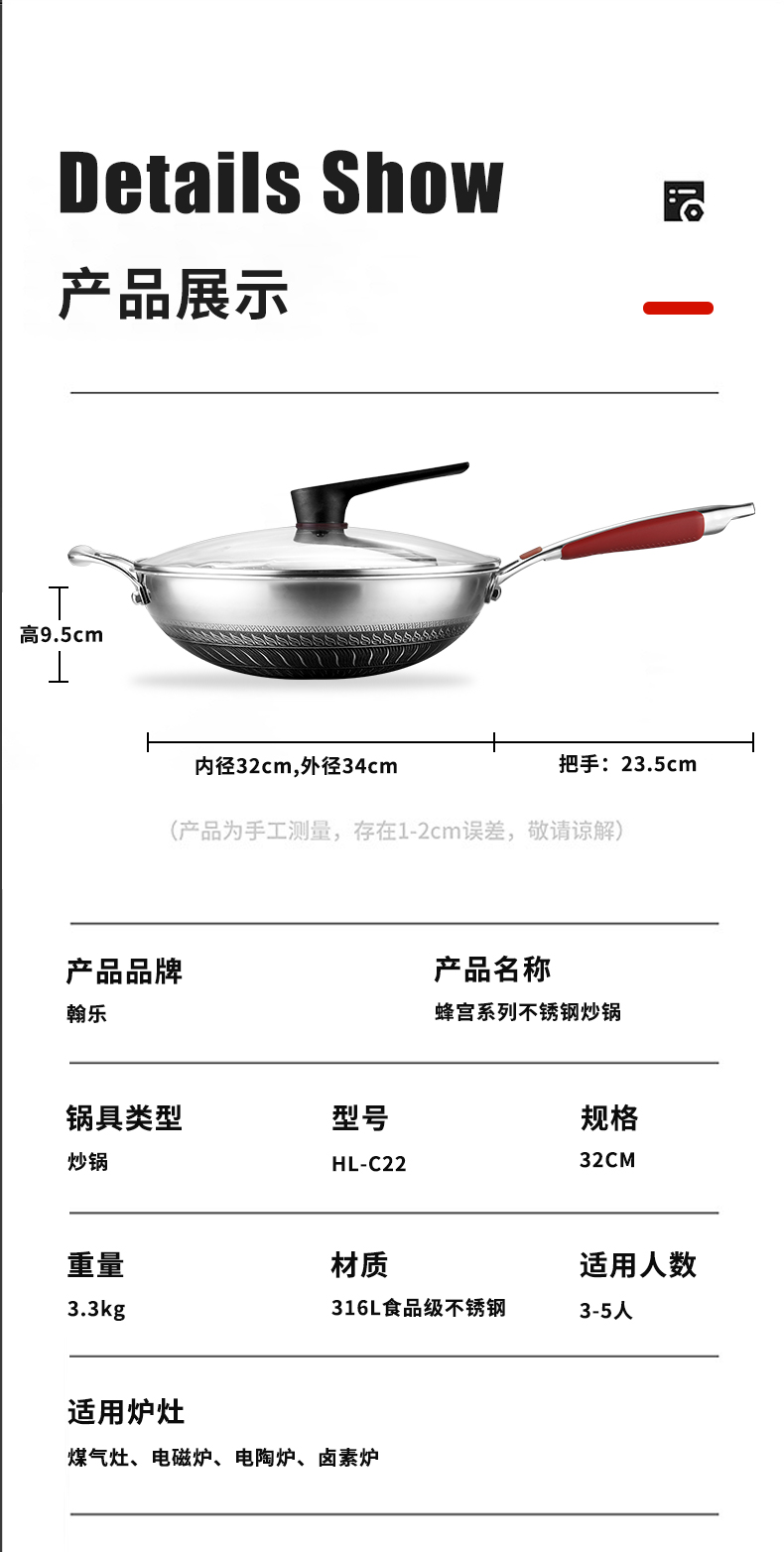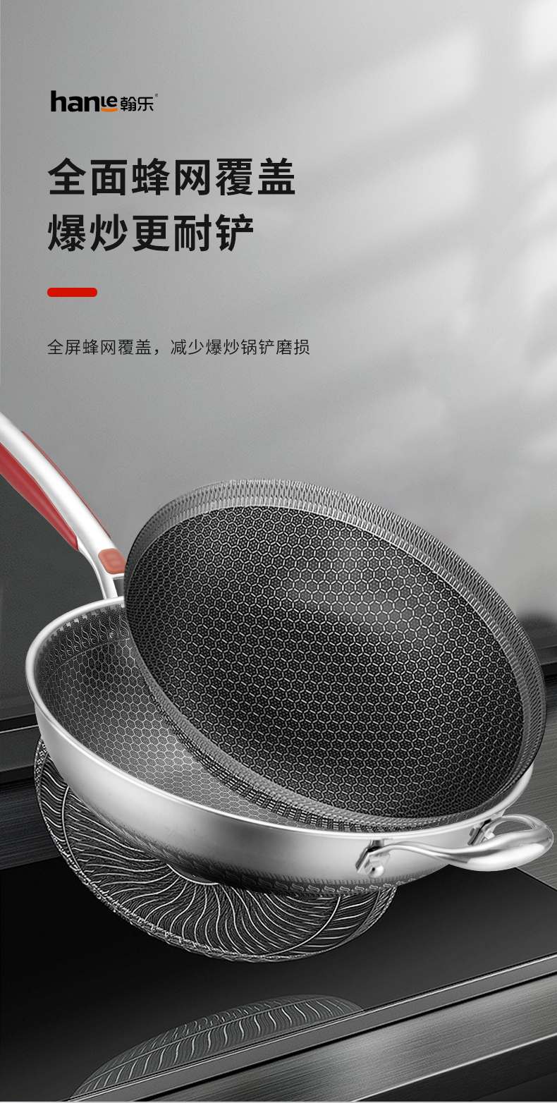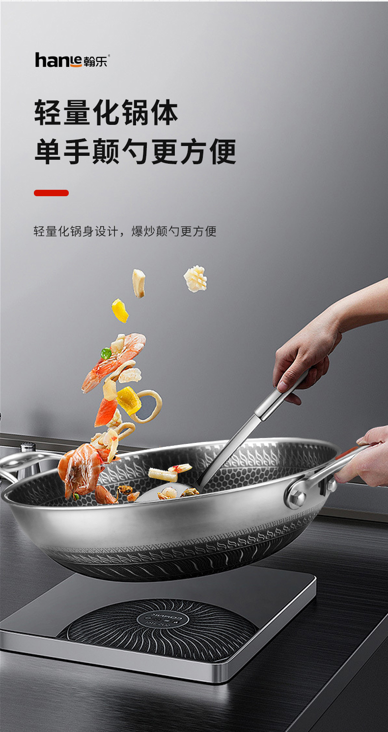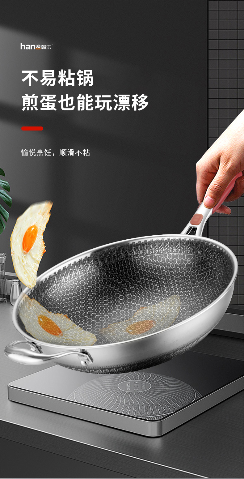 翰乐 304不锈钢蜂宫系列HL-C22不锈钢炒锅34cm(套)