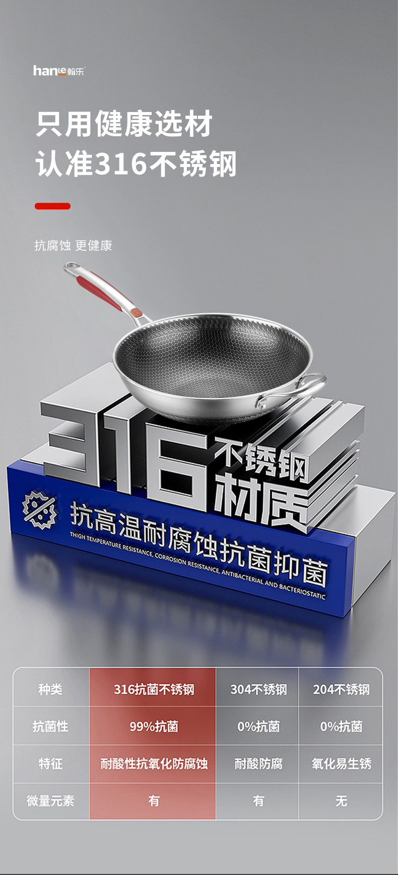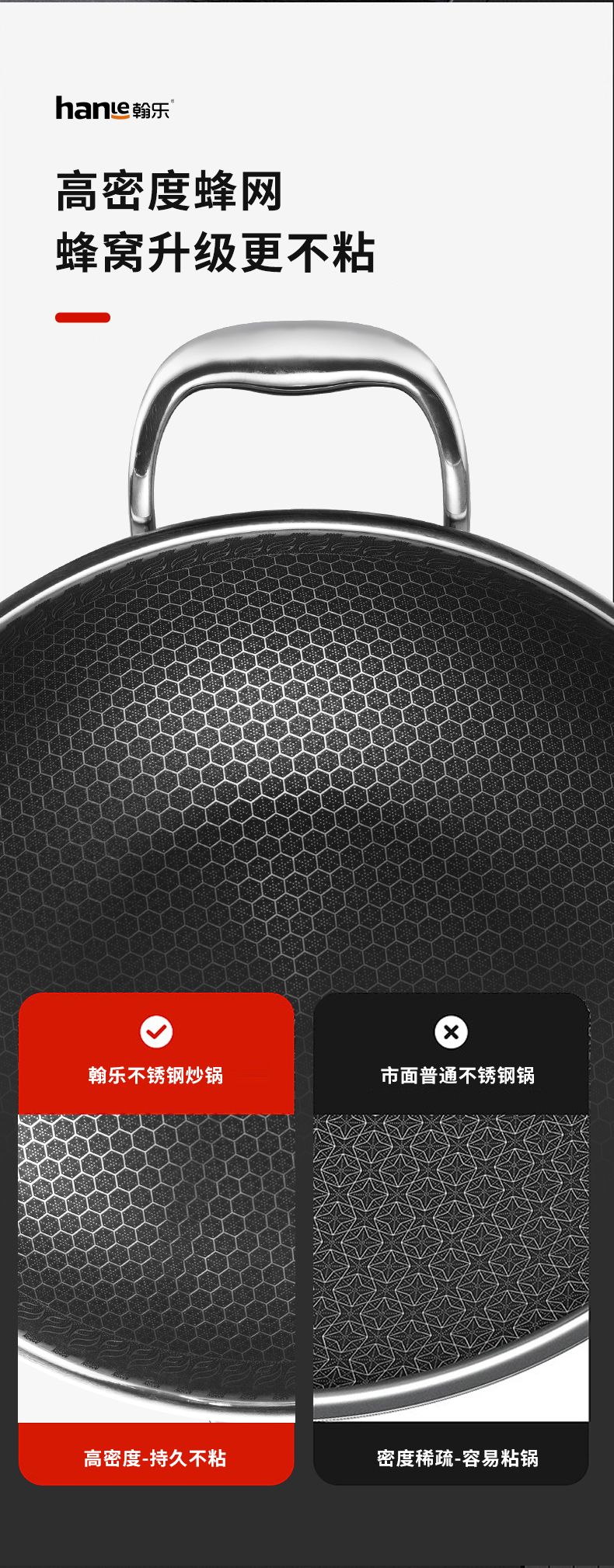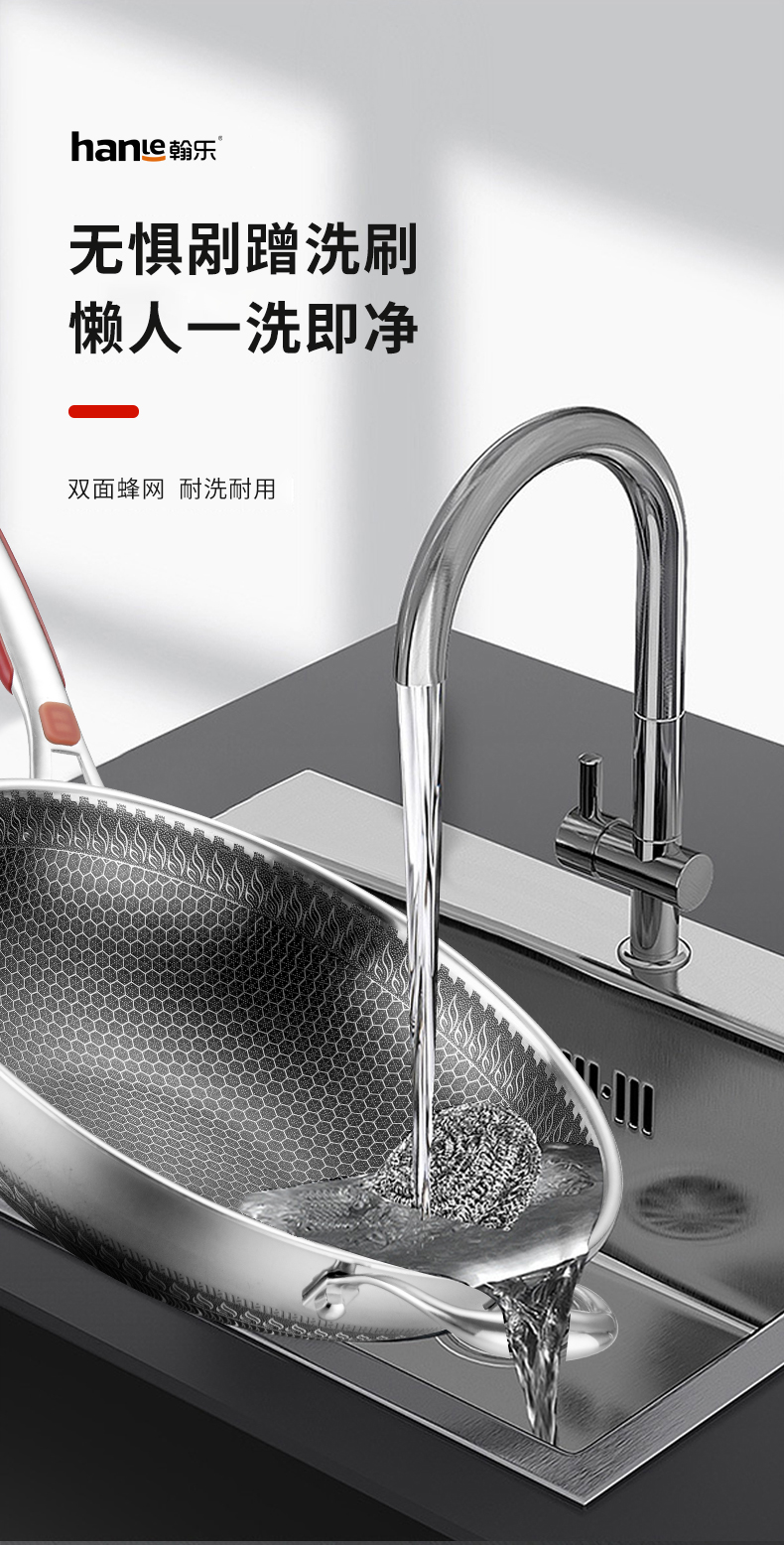 翰乐 304不锈钢蜂宫系列HL-C22不锈钢炒锅34cm(套)