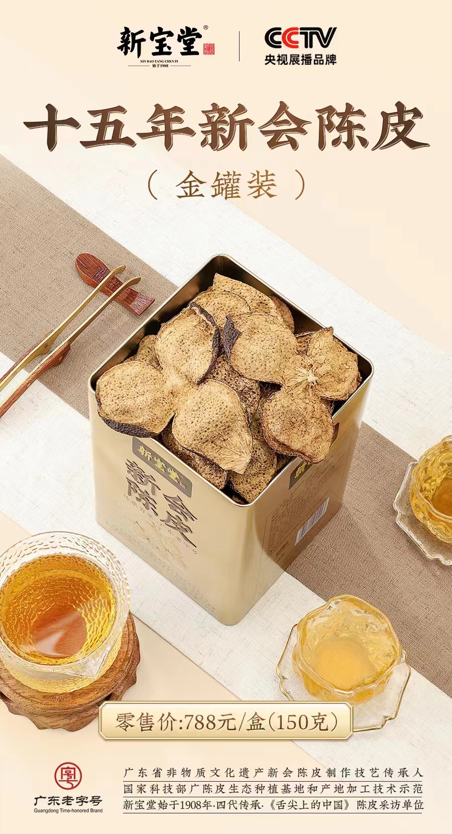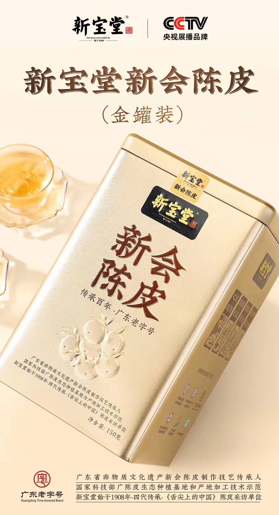 新宝堂十五年新会陈皮 金罐150克