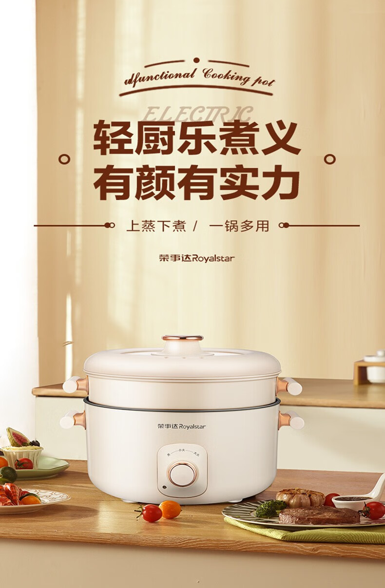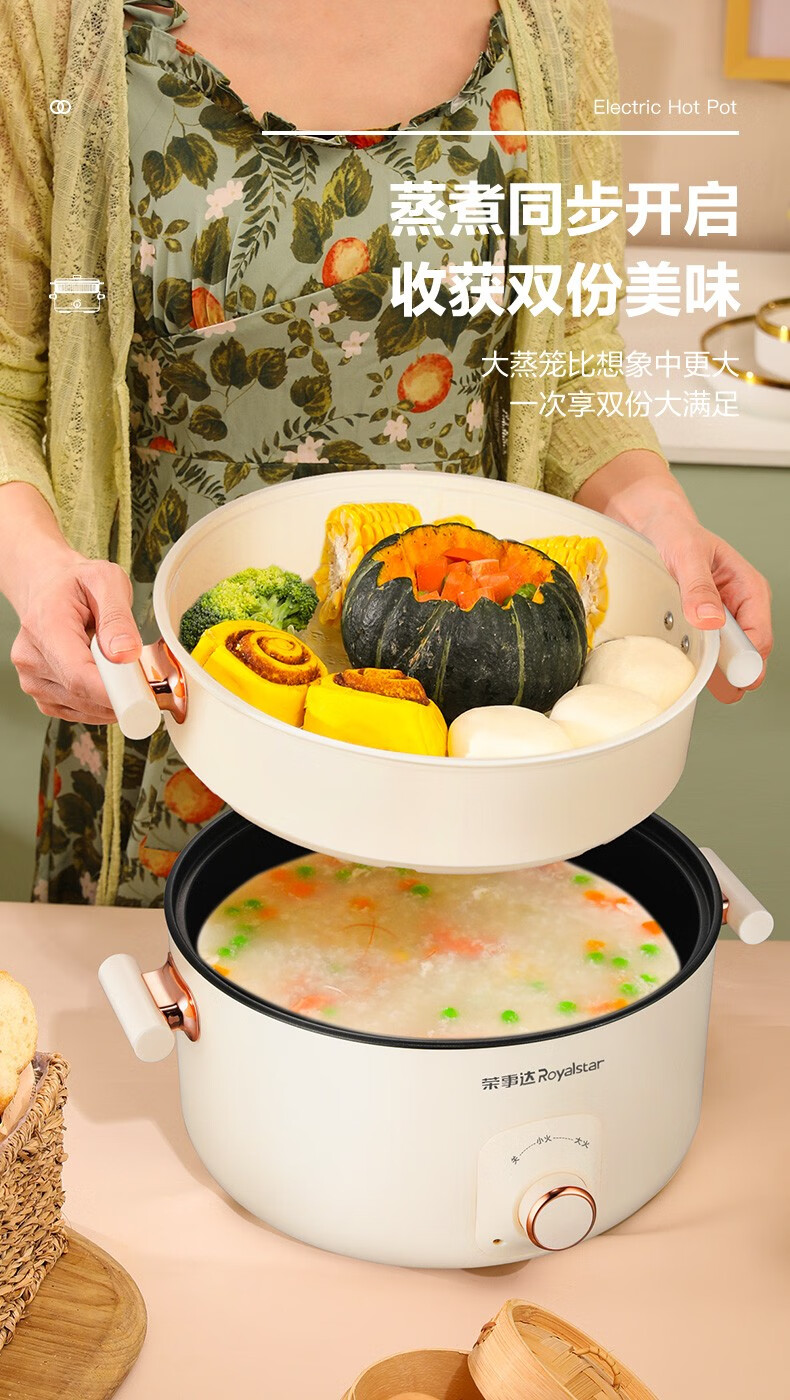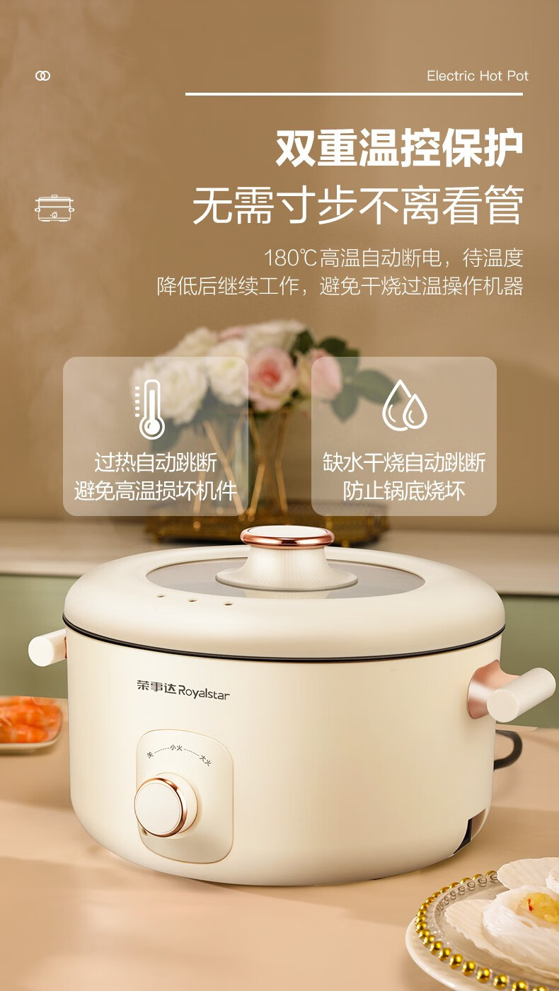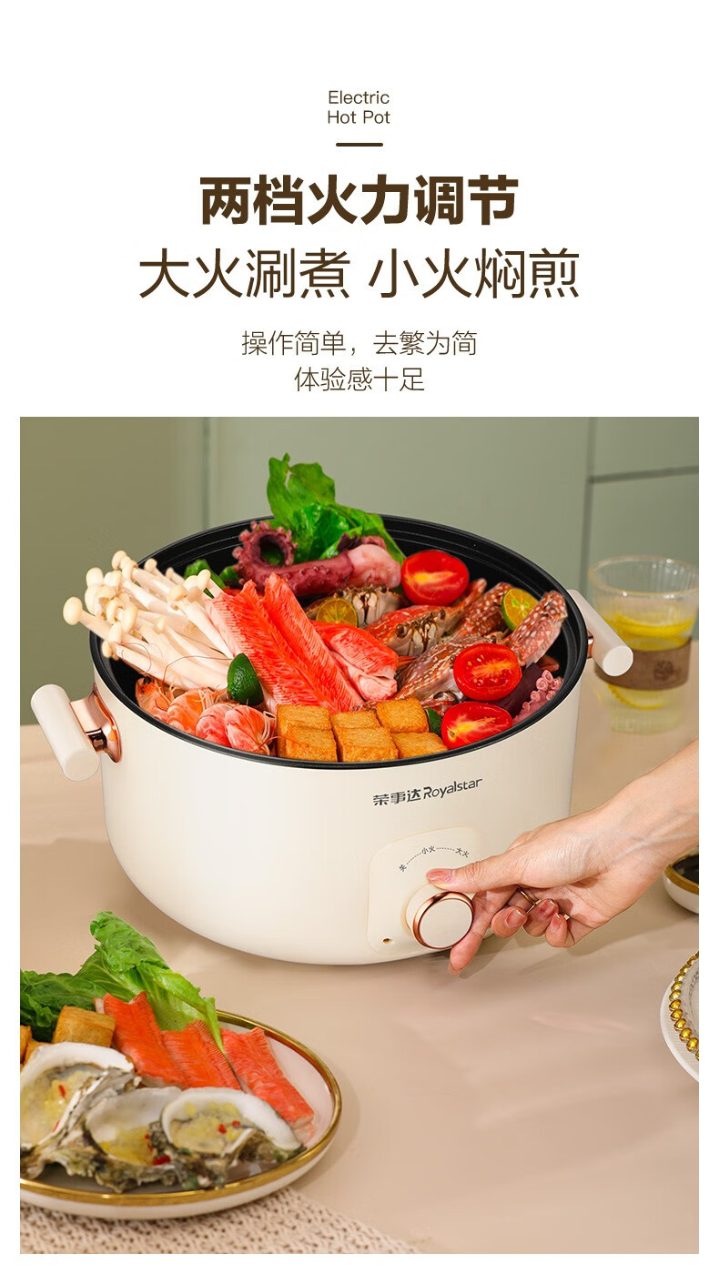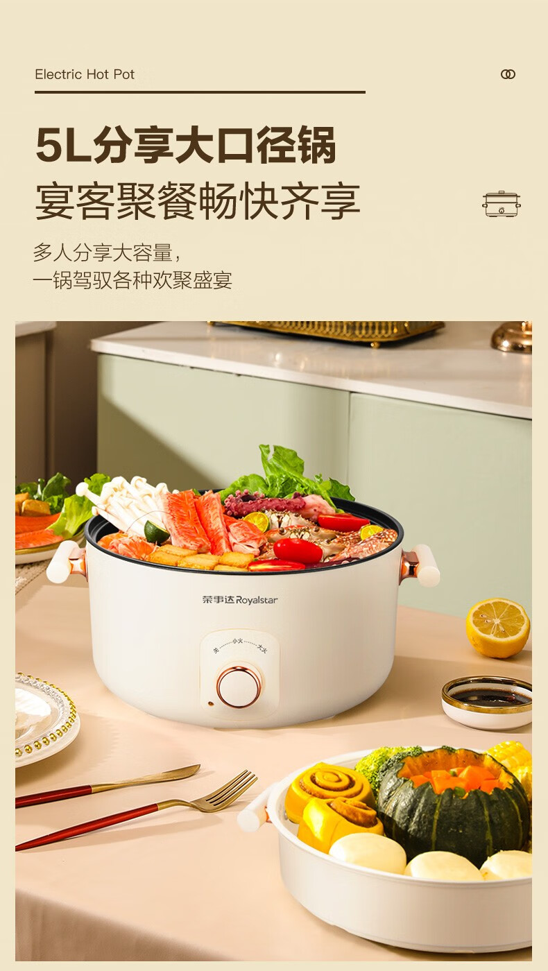 荣事达(Royalstar)家用5L大容量电火锅 RHG05F(单位:台)白色 白色