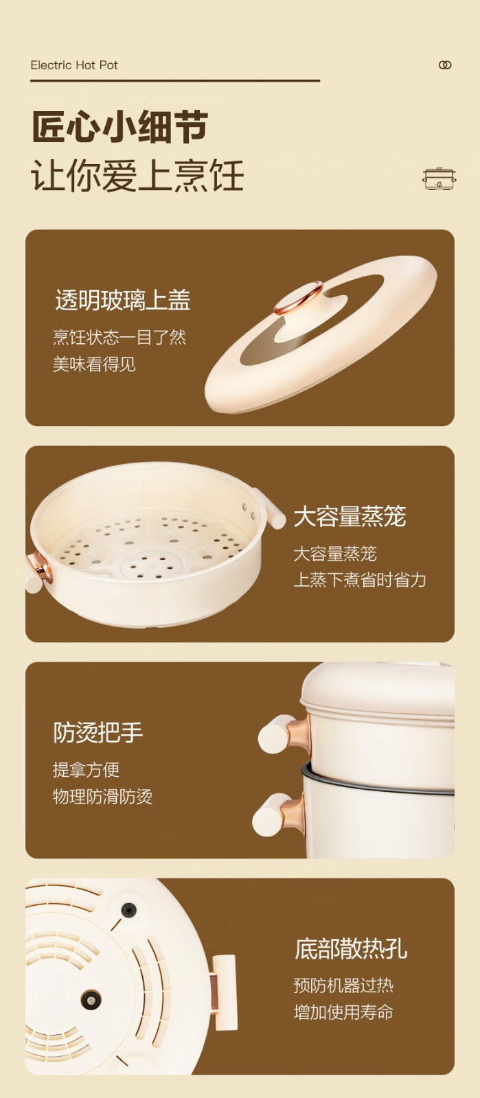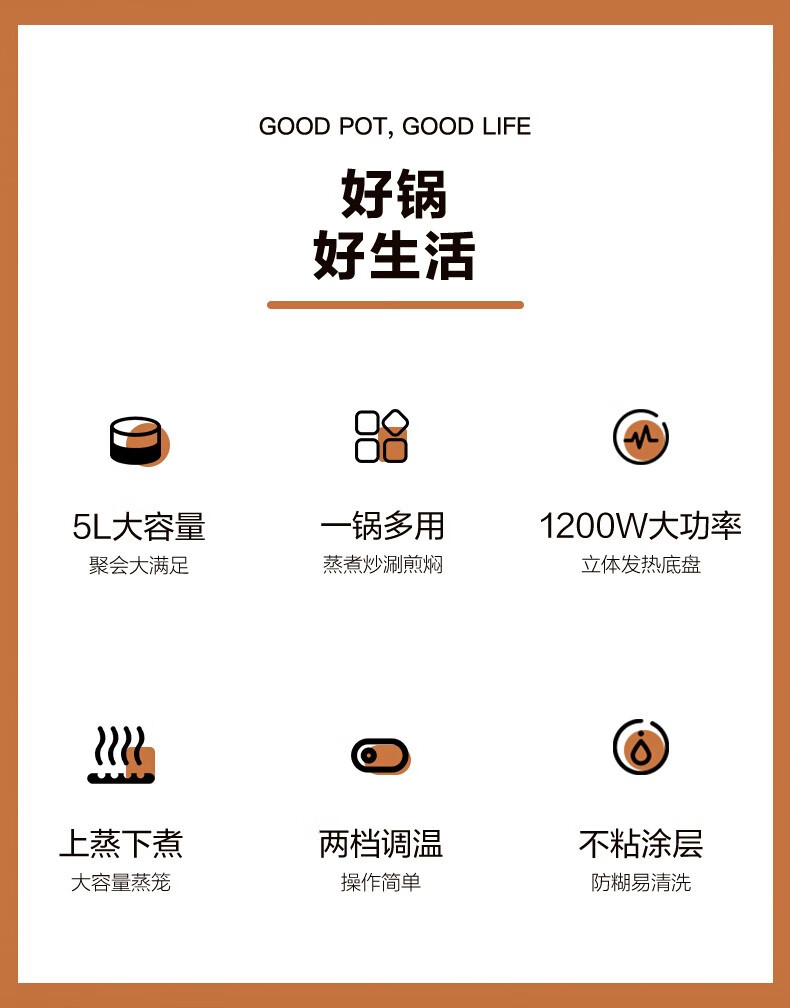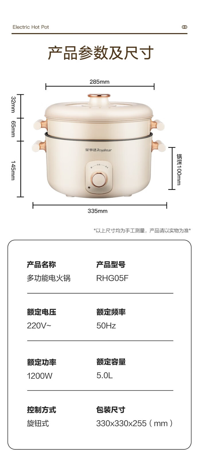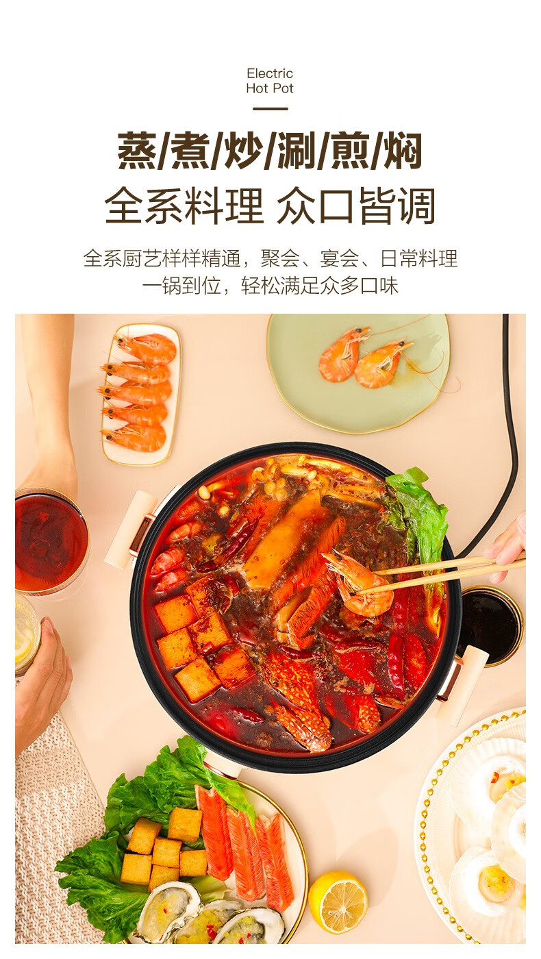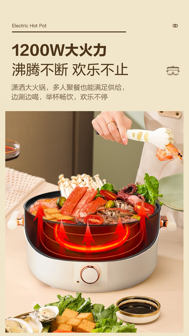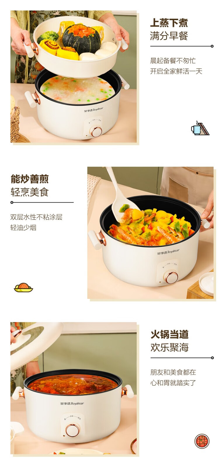荣事达(Royalstar)家用5L大容量电火锅 RHG05F(单位:台)白色 白色
