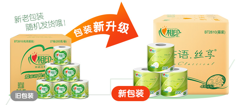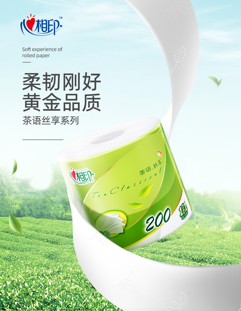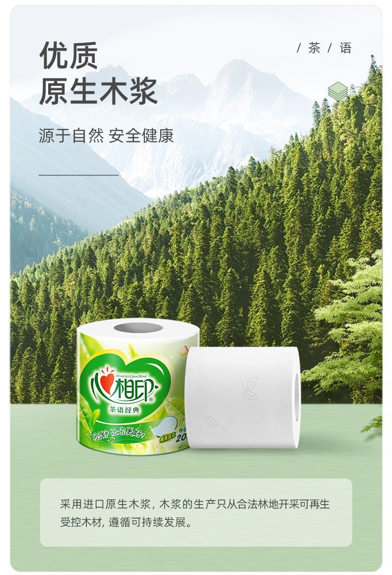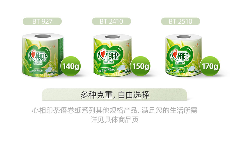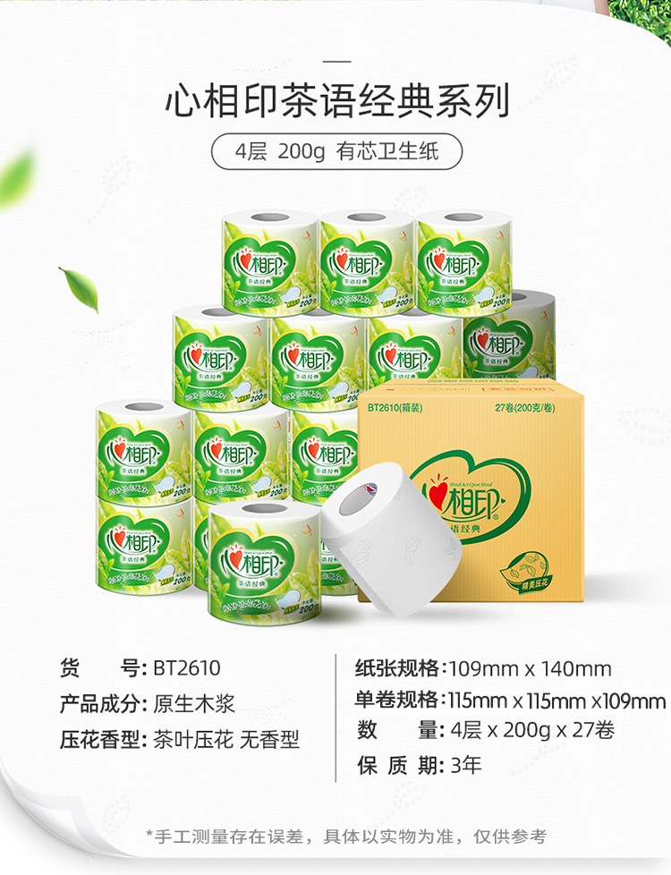 心相印(Mind Act Upon Mind) BT2610(箱装)茶语经典200克27粒装四层茶叶压花卷筒卫生纸 (箱)(单位:箱)白色