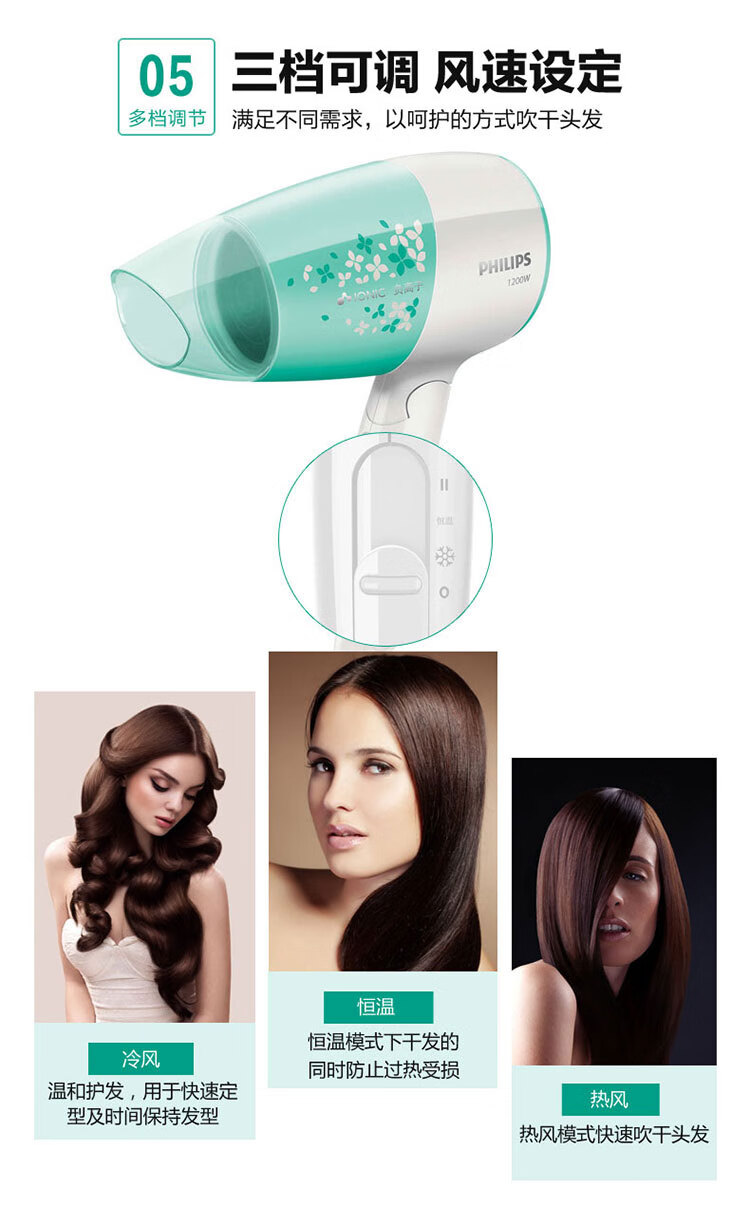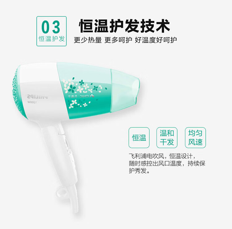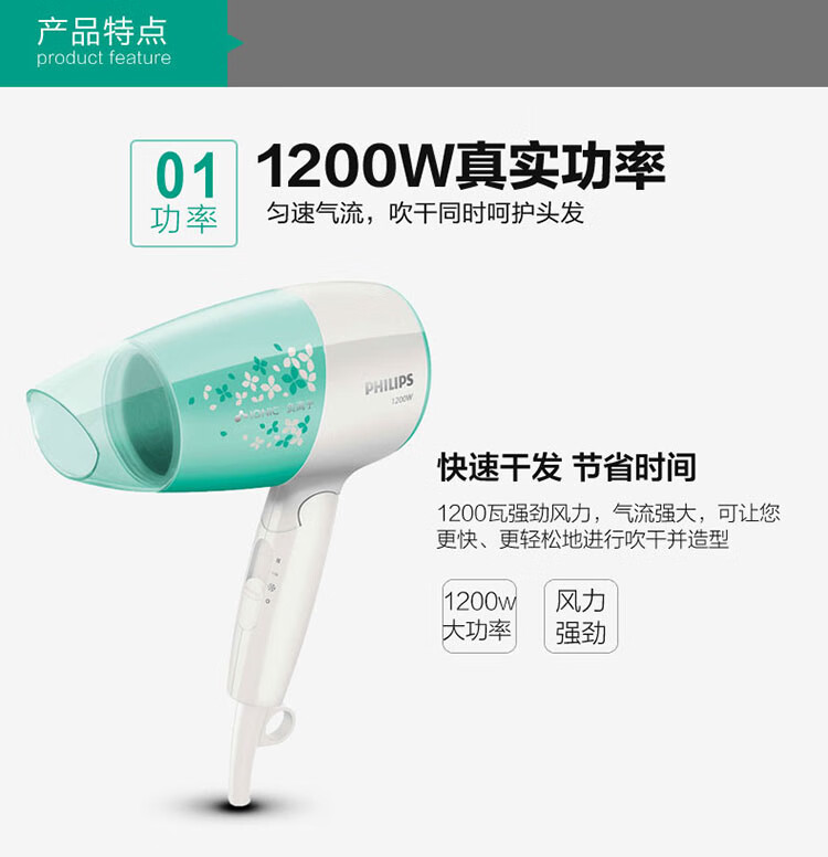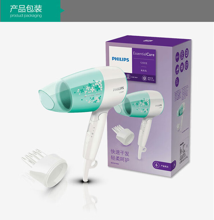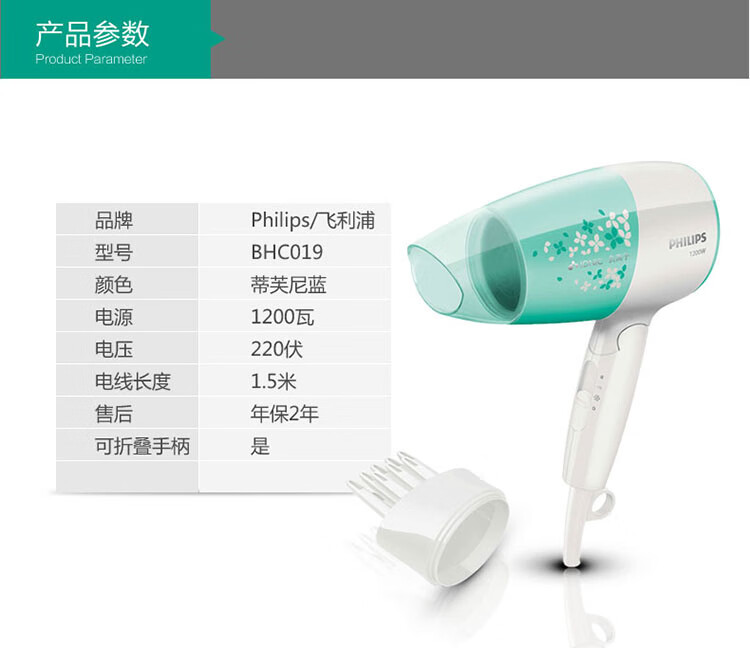 飞利浦 (Philips) BHC019 负离子 可折叠便携式 电吹风 (计价单位:个) 蒂芙尼蓝