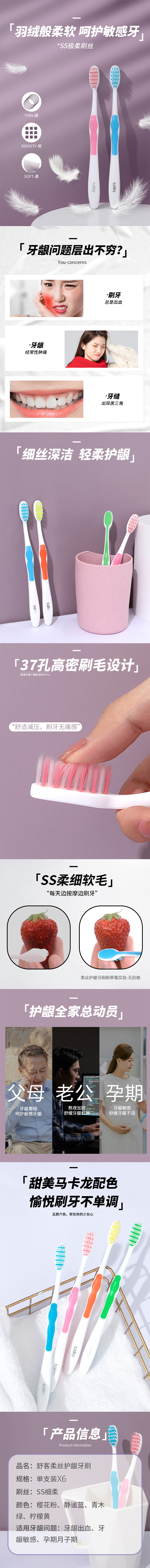 舒客弹力护龈牙刷6支(3支*2) SK0025 粉色