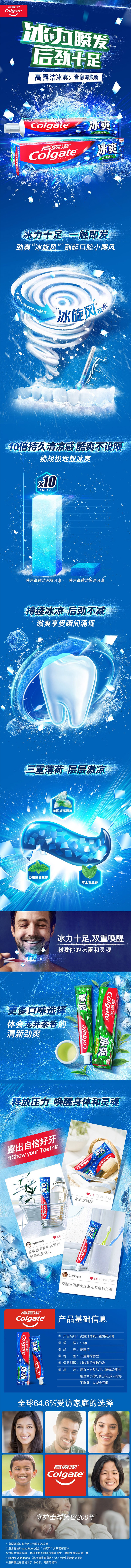 高露洁冰爽牙膏三重薄荷120g*2 绿色