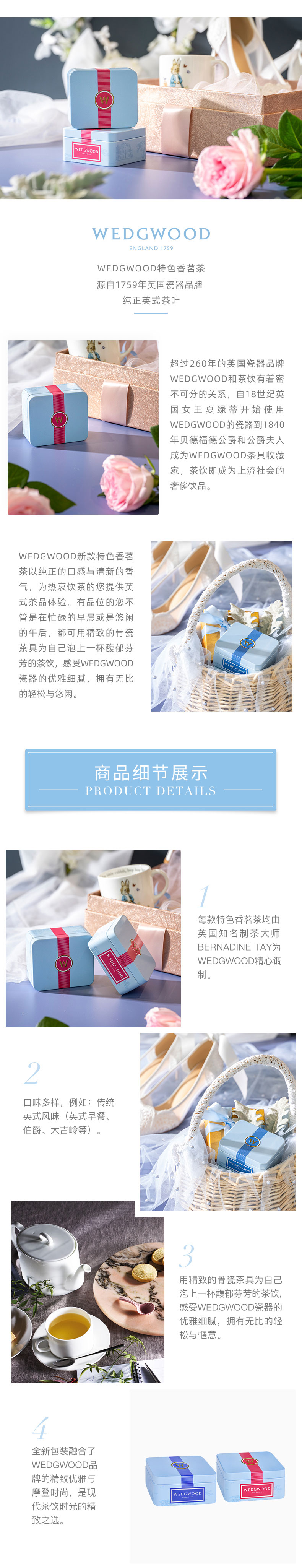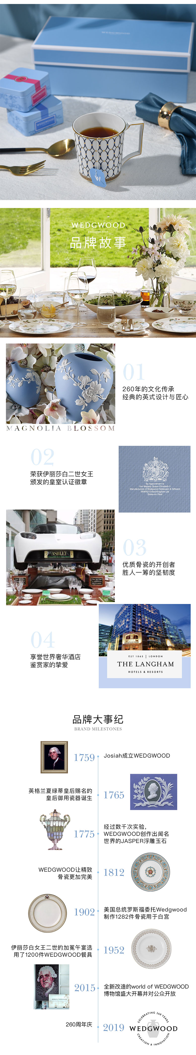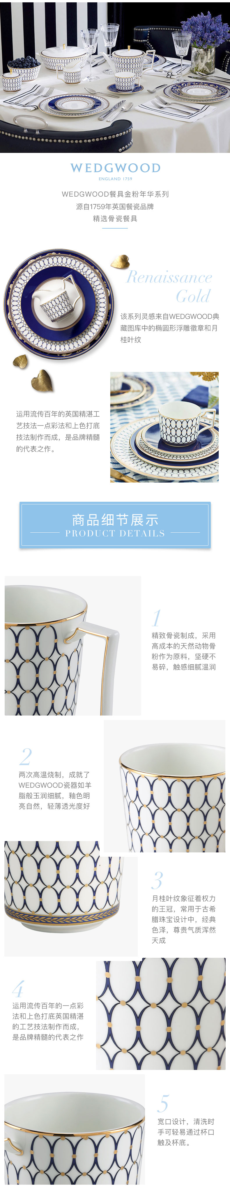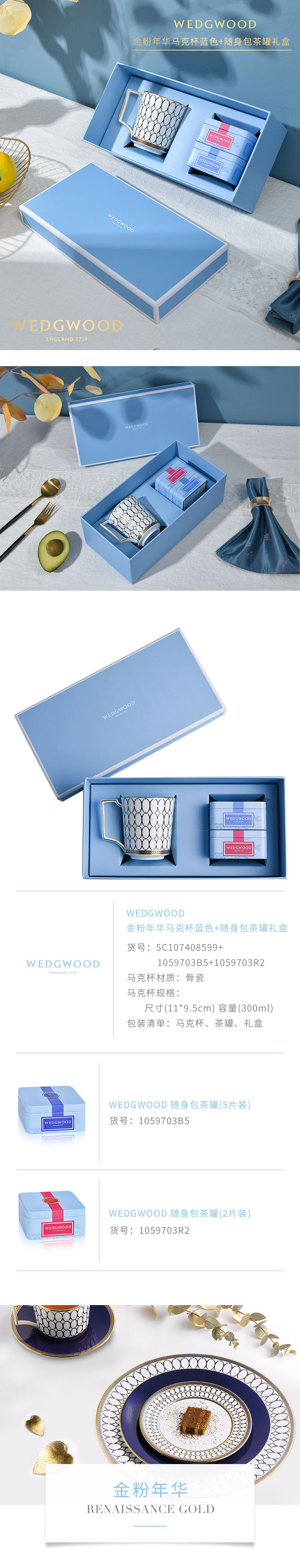 WEDGWOOD威基伍德金粉年华骨瓷马克杯午夜蓝+随身包茶罐礼盒 宝石蓝