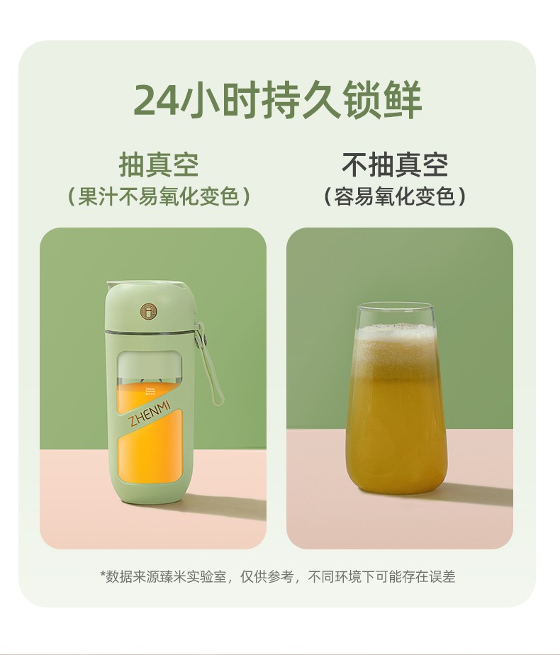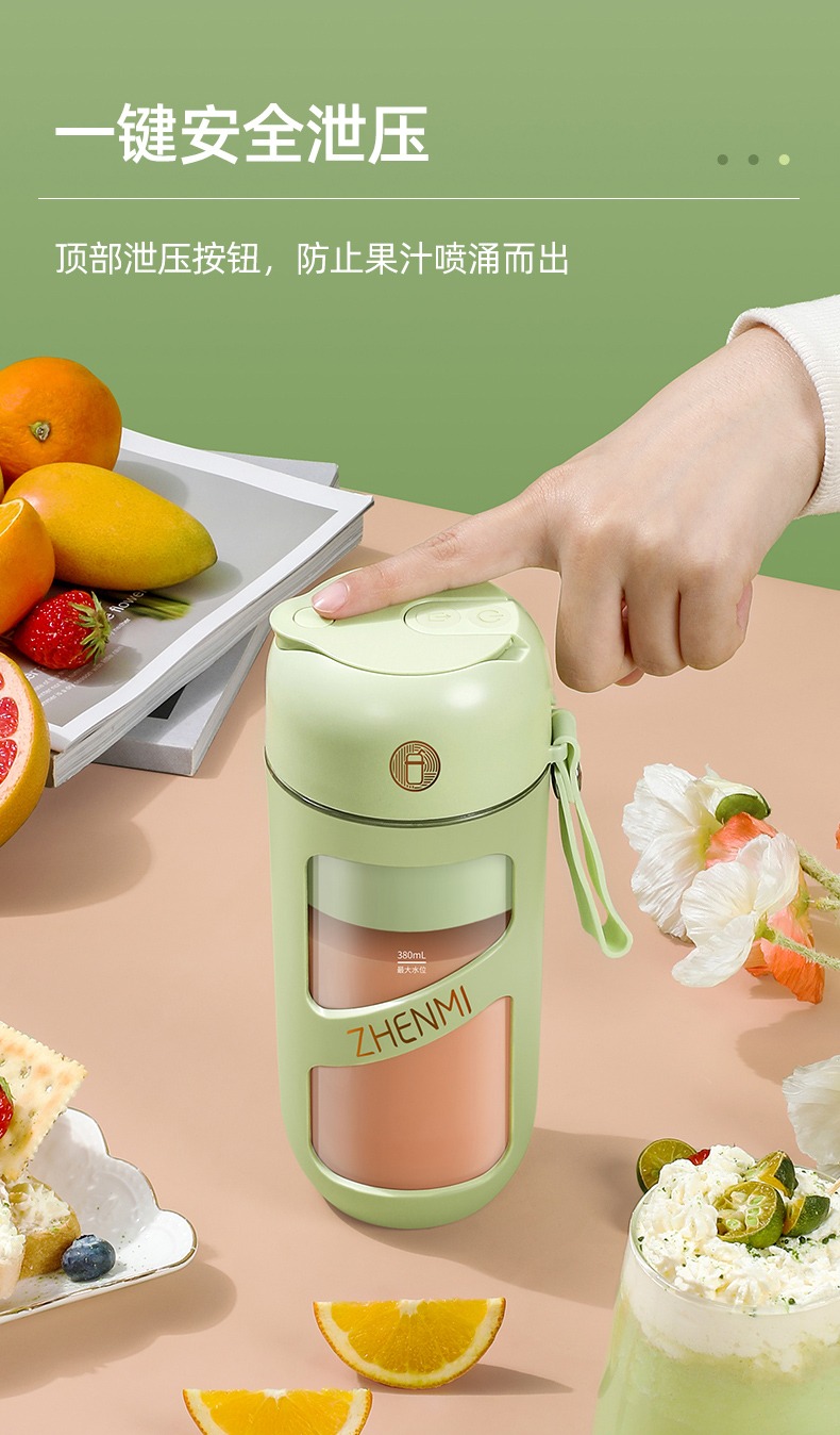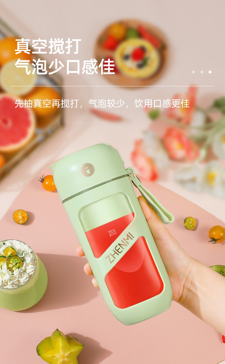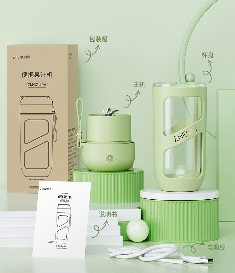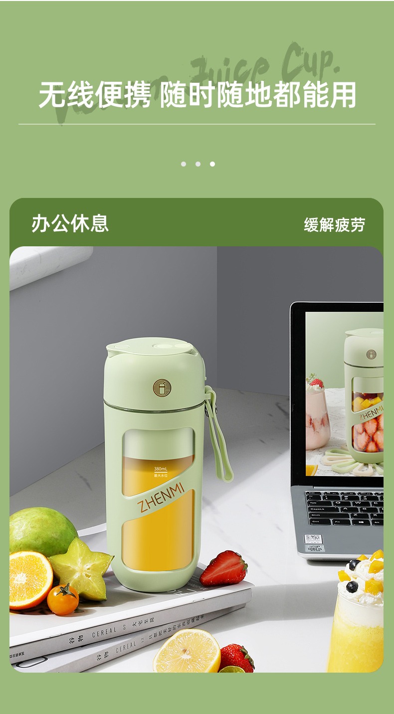 臻米抽真空榨汁机家用多功能电动小型便携式无线炸水果搅拌果汁杯 ZMGZ-J9A(单位:台) 牛油果绿