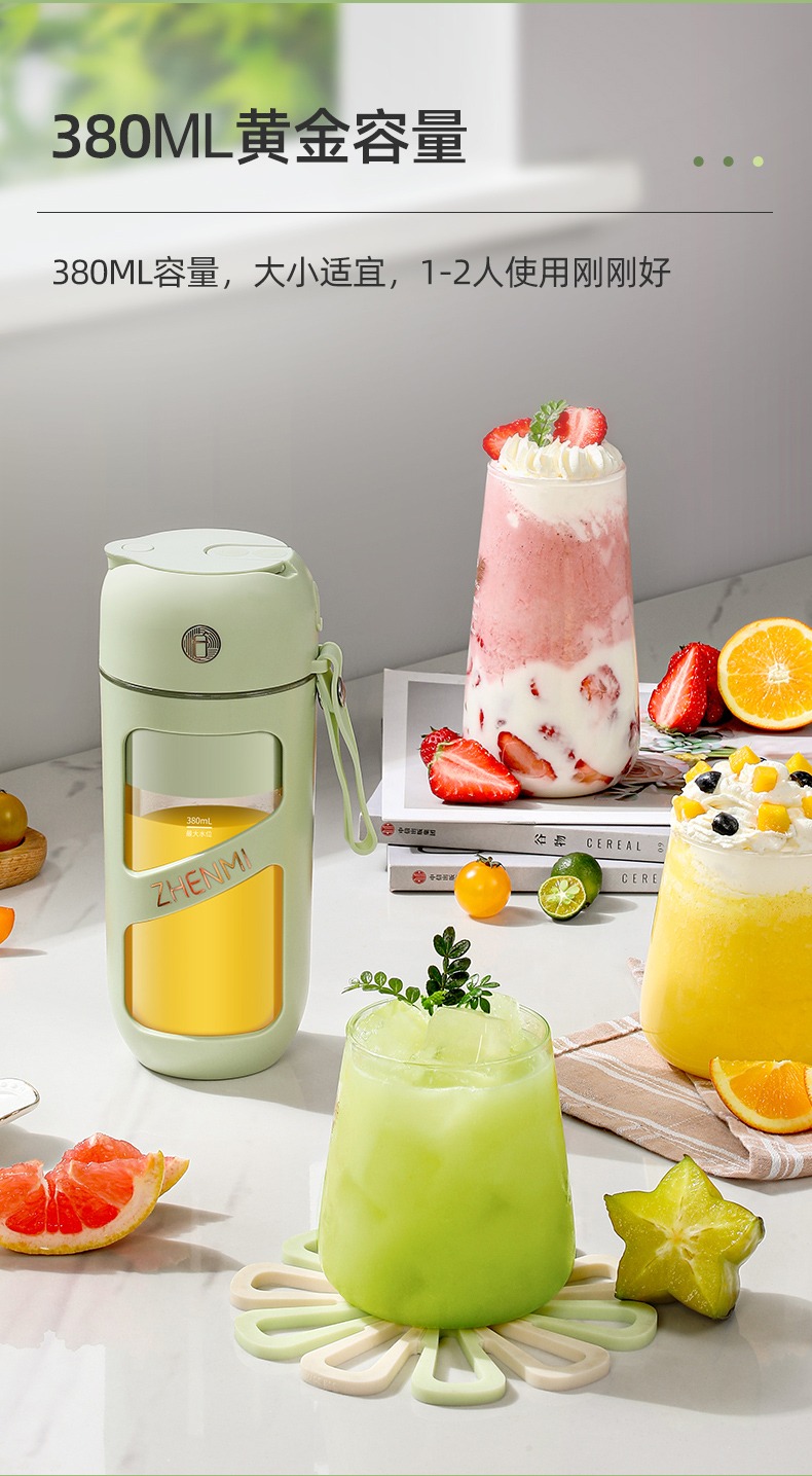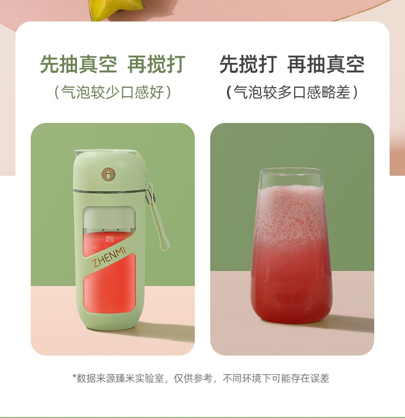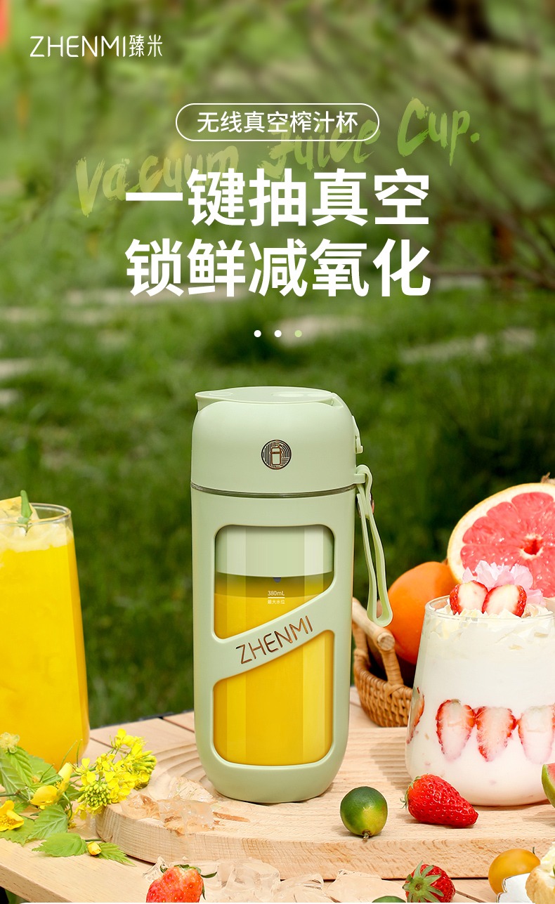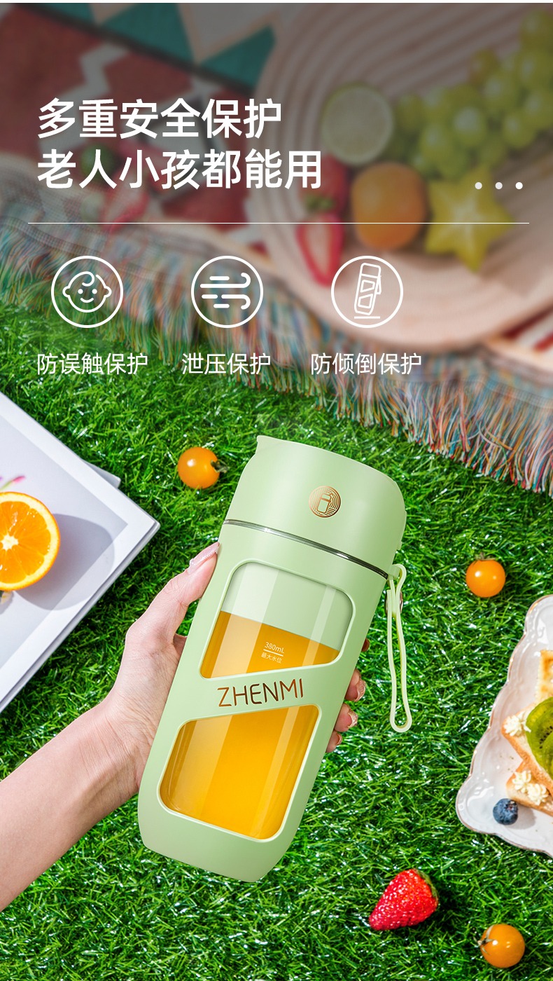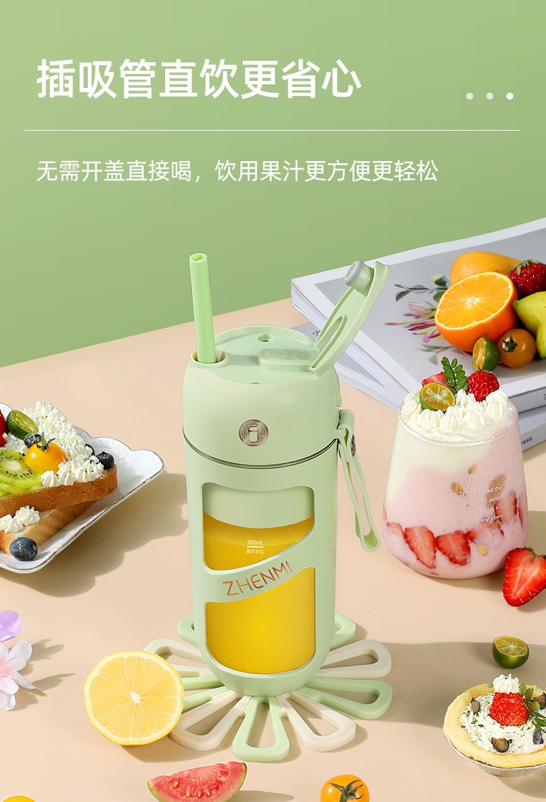 臻米抽真空榨汁机家用多功能电动小型便携式无线炸水果搅拌果汁杯 ZMGZ-J9A(单位:台) 牛油果绿