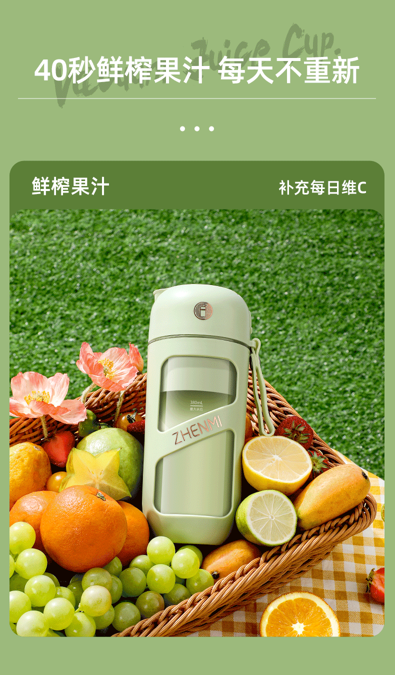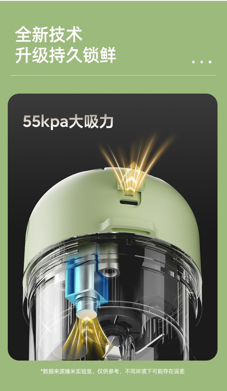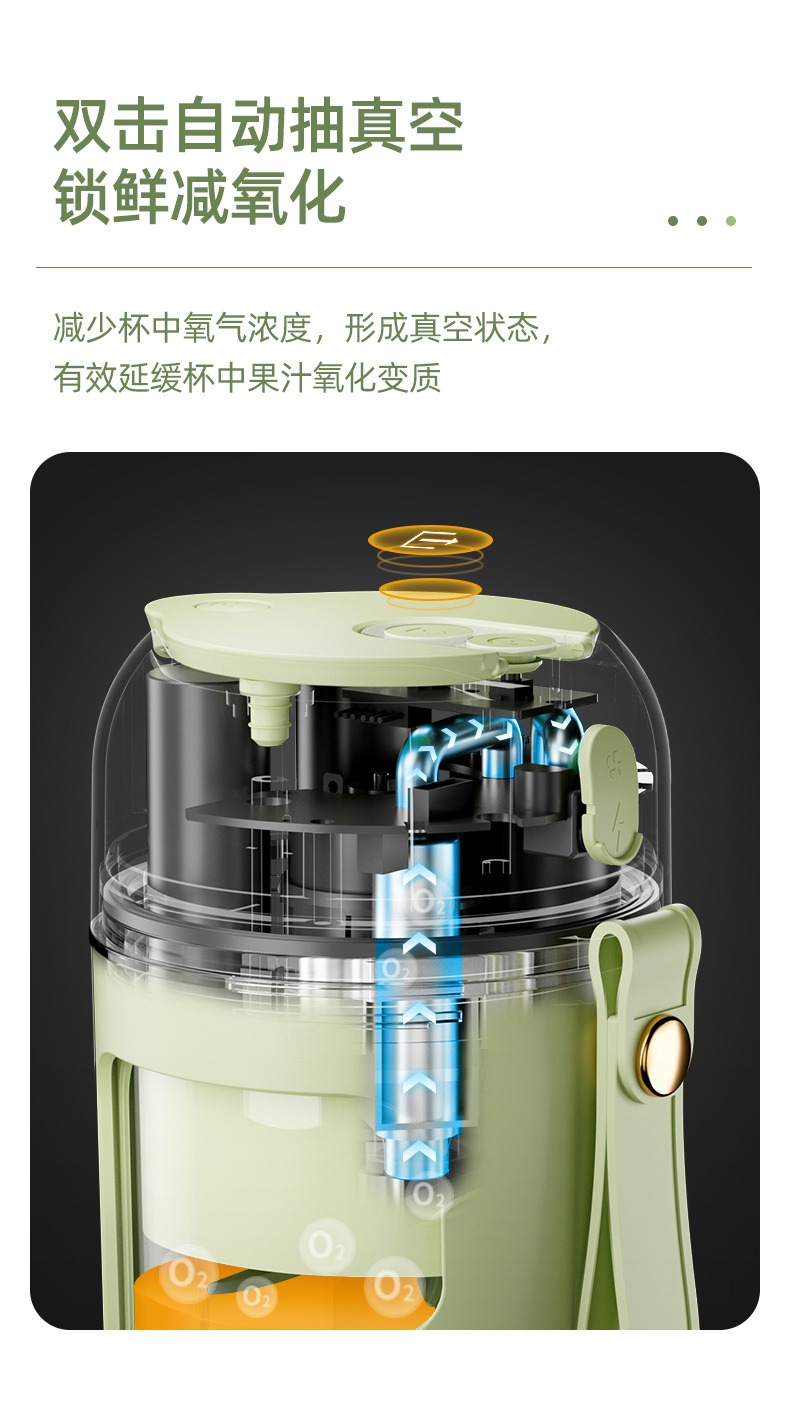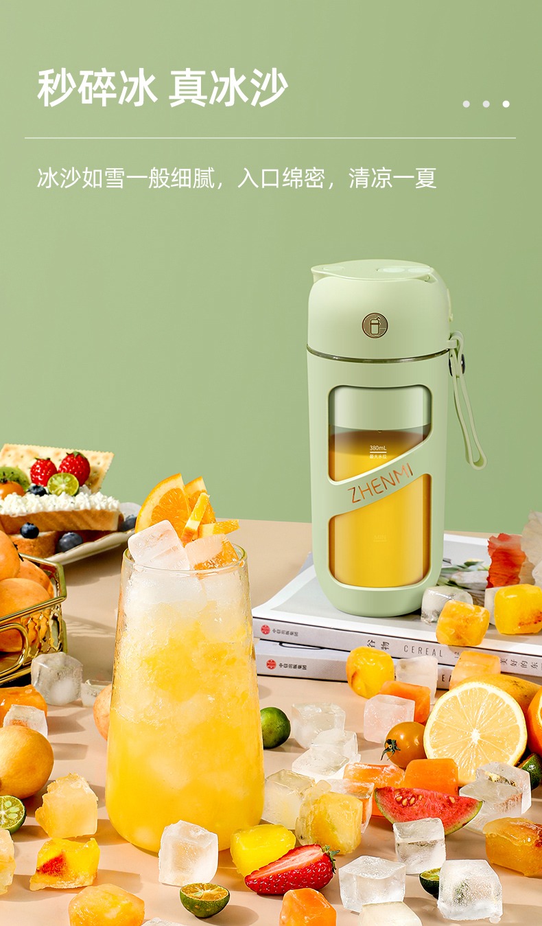 臻米抽真空榨汁机家用多功能电动小型便携式无线炸水果搅拌果汁杯 ZMGZ-J9A(单位:台) 牛油果绿