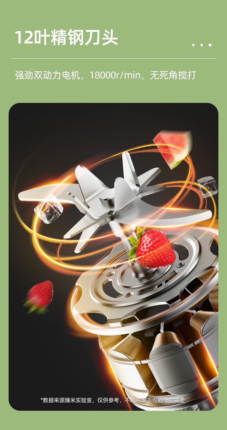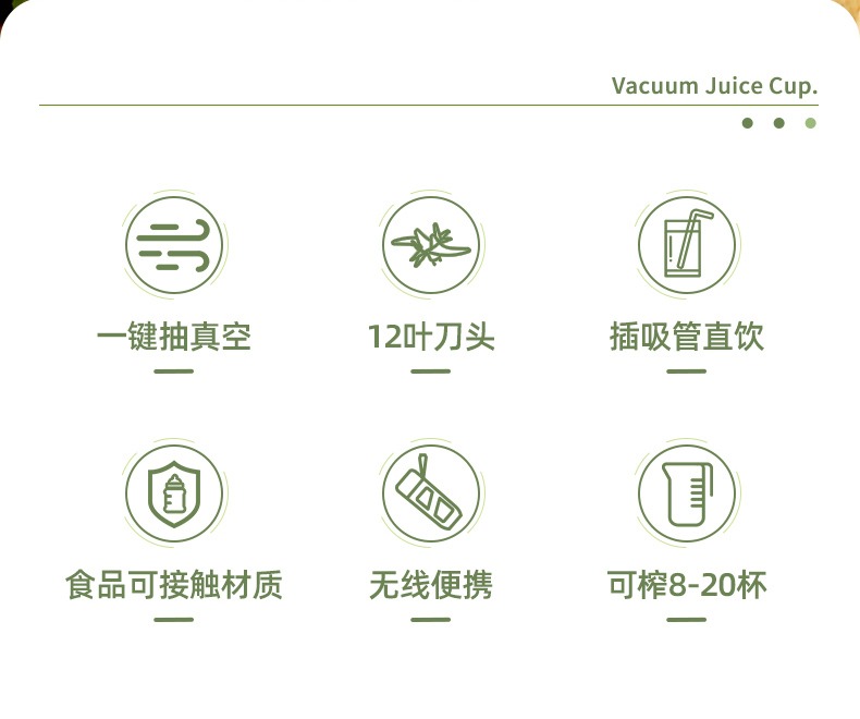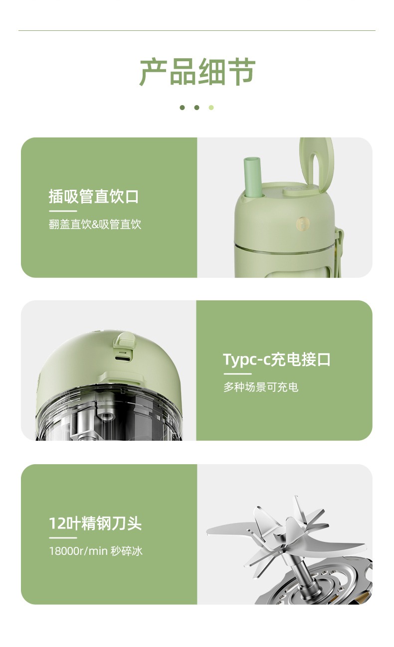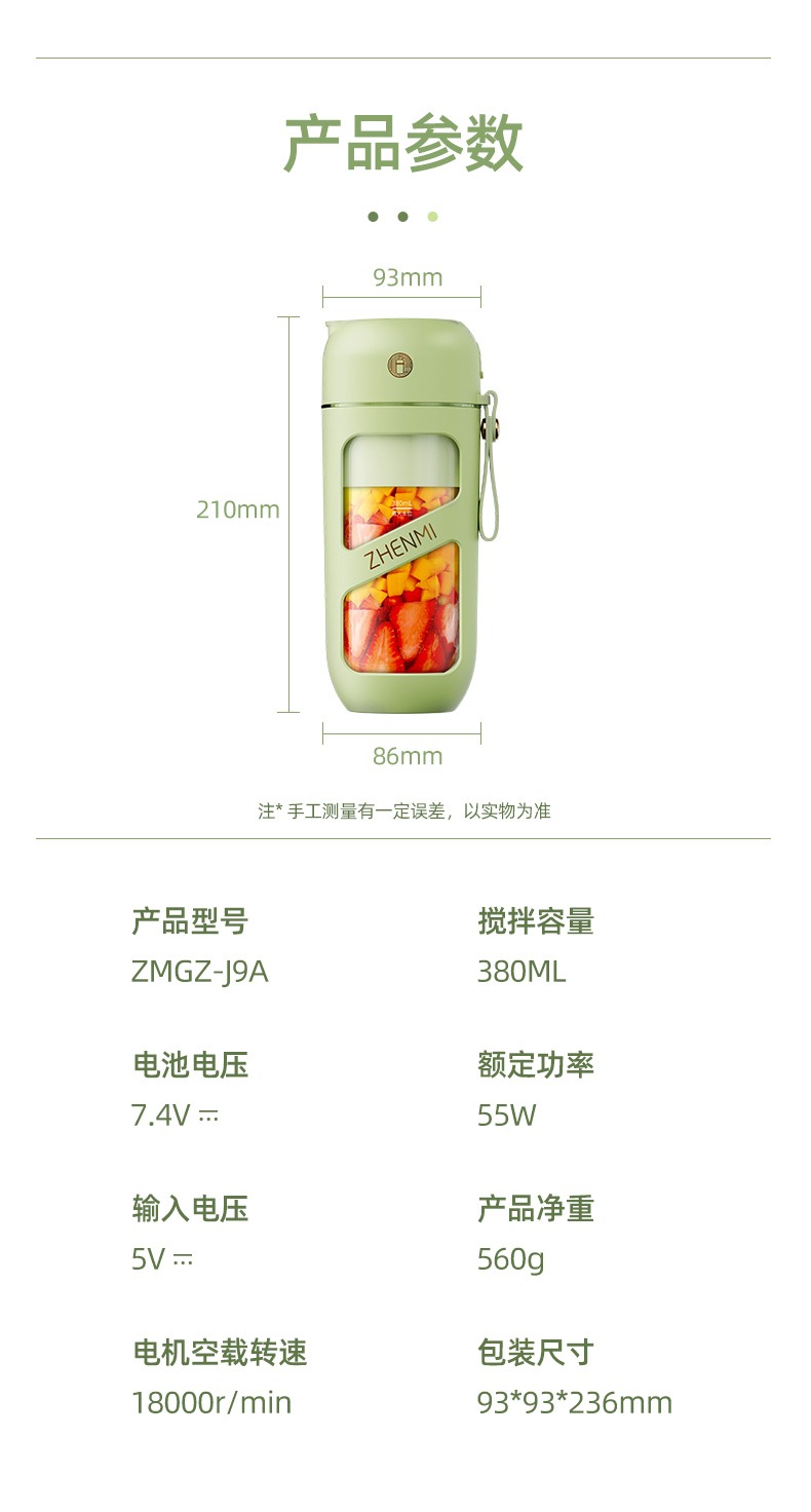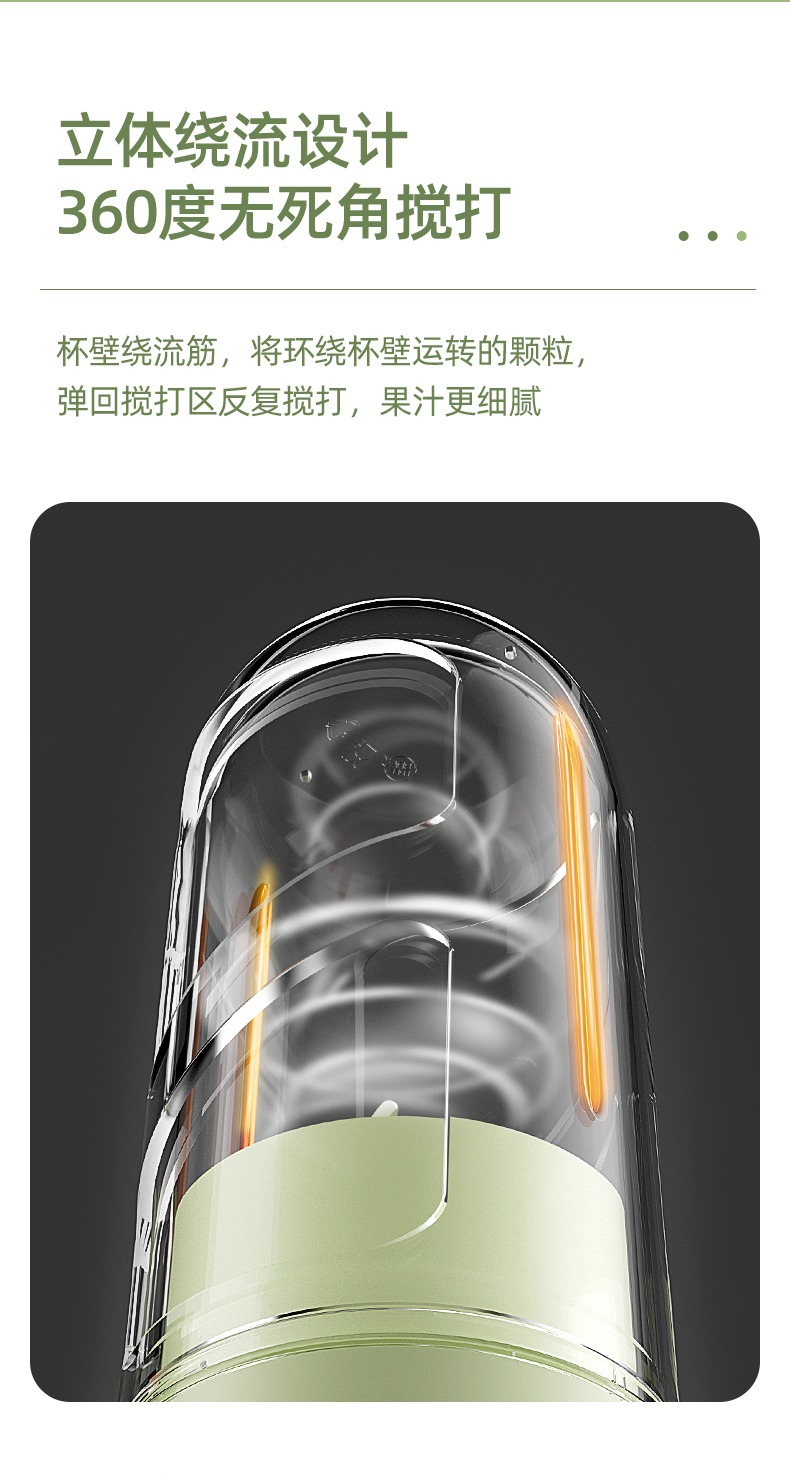 臻米抽真空榨汁机家用多功能电动小型便携式无线炸水果搅拌果汁杯 ZMGZ-J9A(单位:台) 牛油果绿