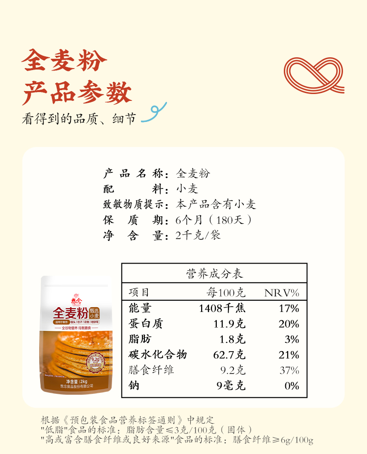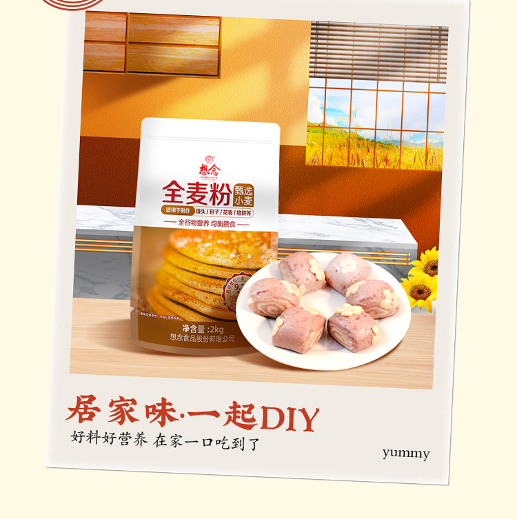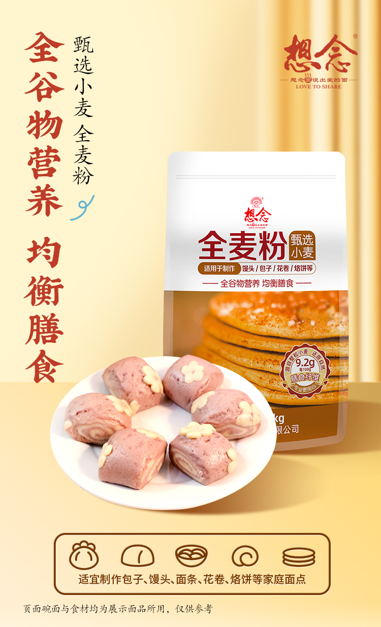想念 甄选全麦粉 2kg*1袋 琥珀色