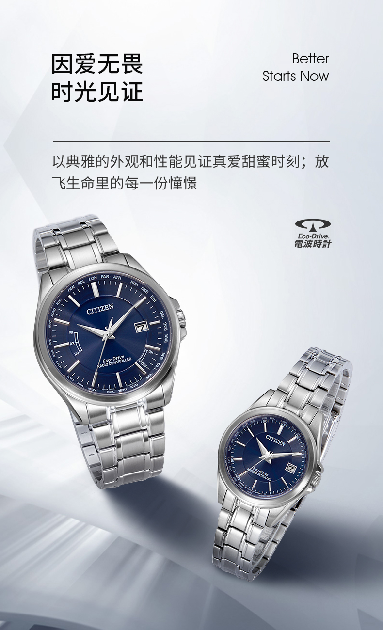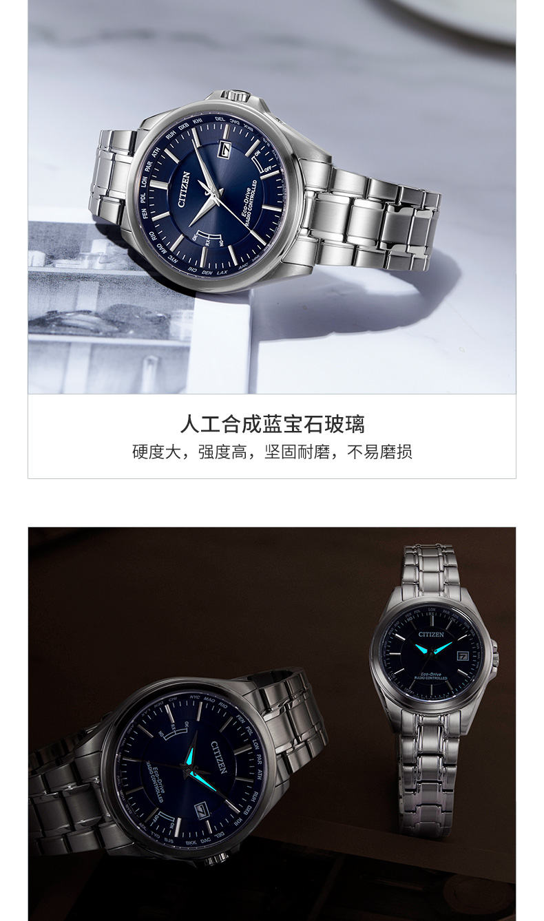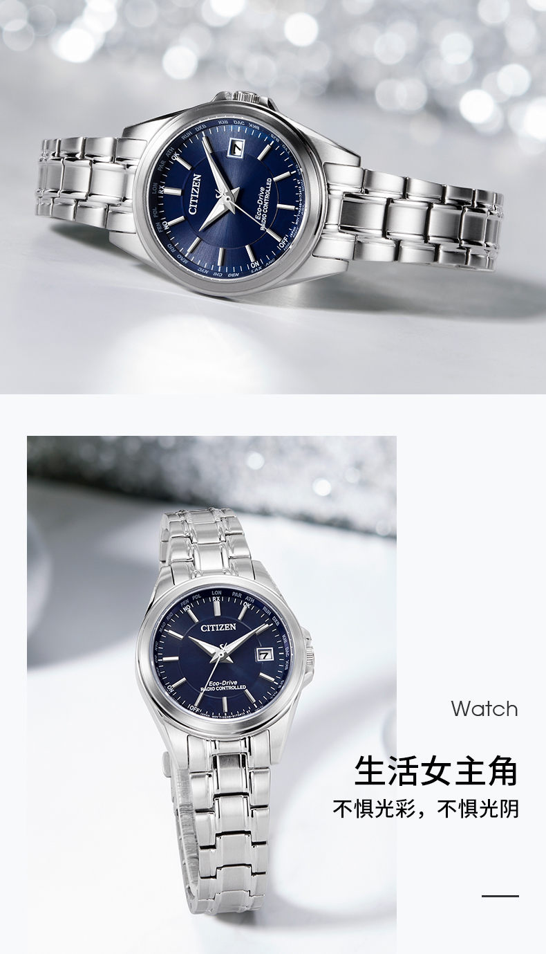 Citizen西铁城 光动能电波手表简约时尚情侣款男表CB0250-84L 极光蓝