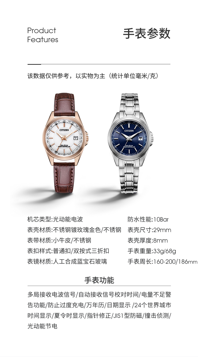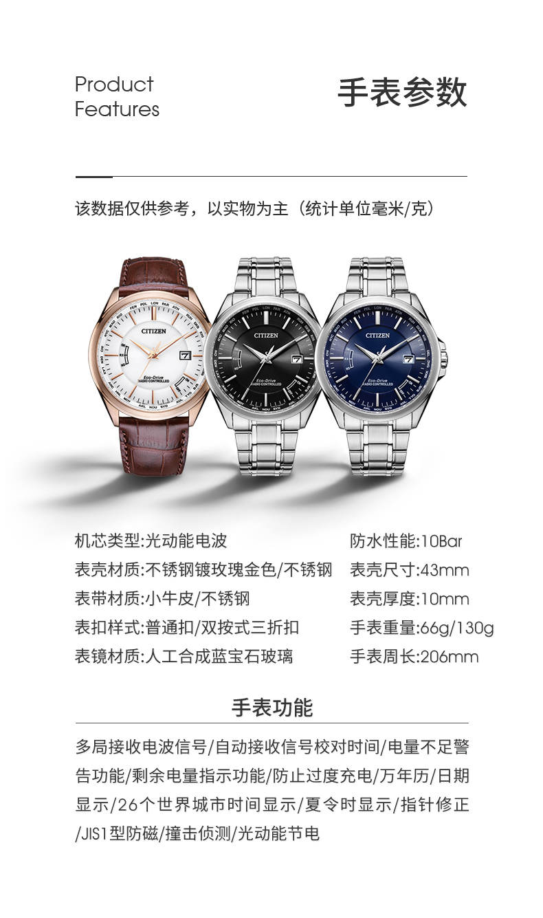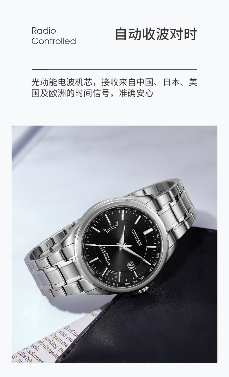 Citizen西铁城 光动能电波手表简约时尚情侣款男表CB0250-84L 极光蓝