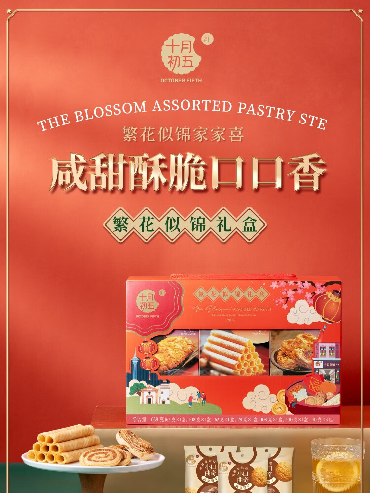 十月初五 繁花似锦礼盒(饼干)638g (单位:盒) 红色