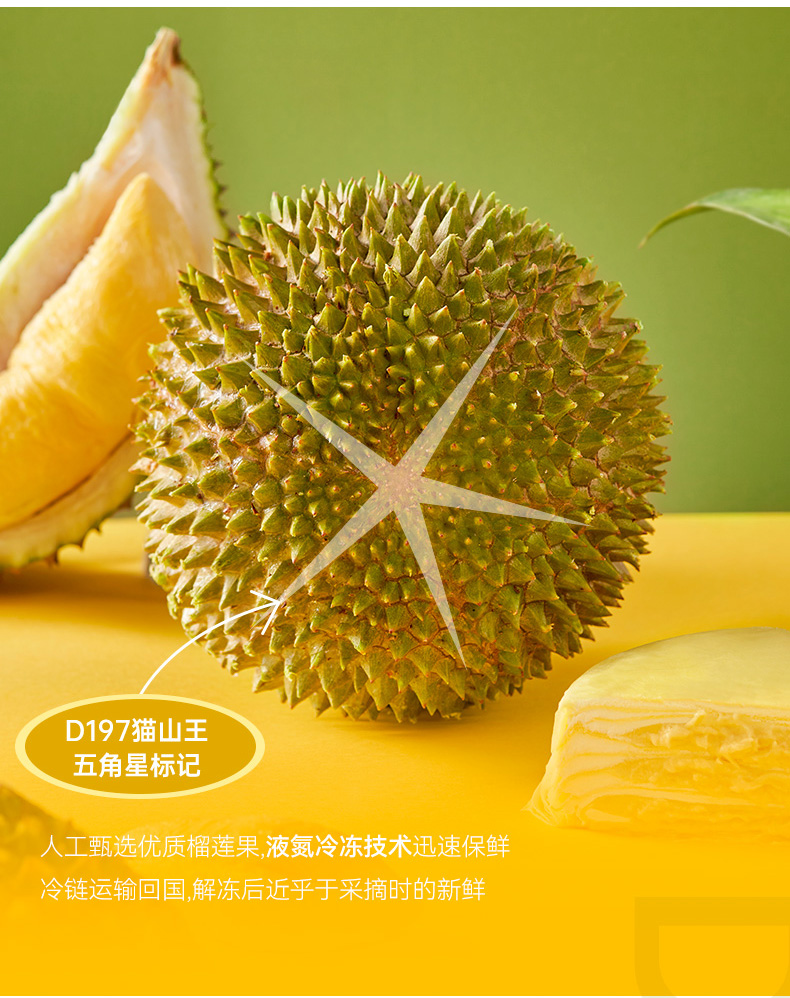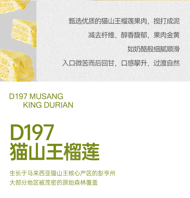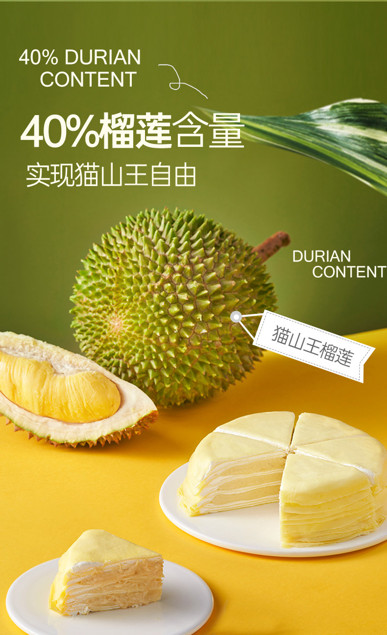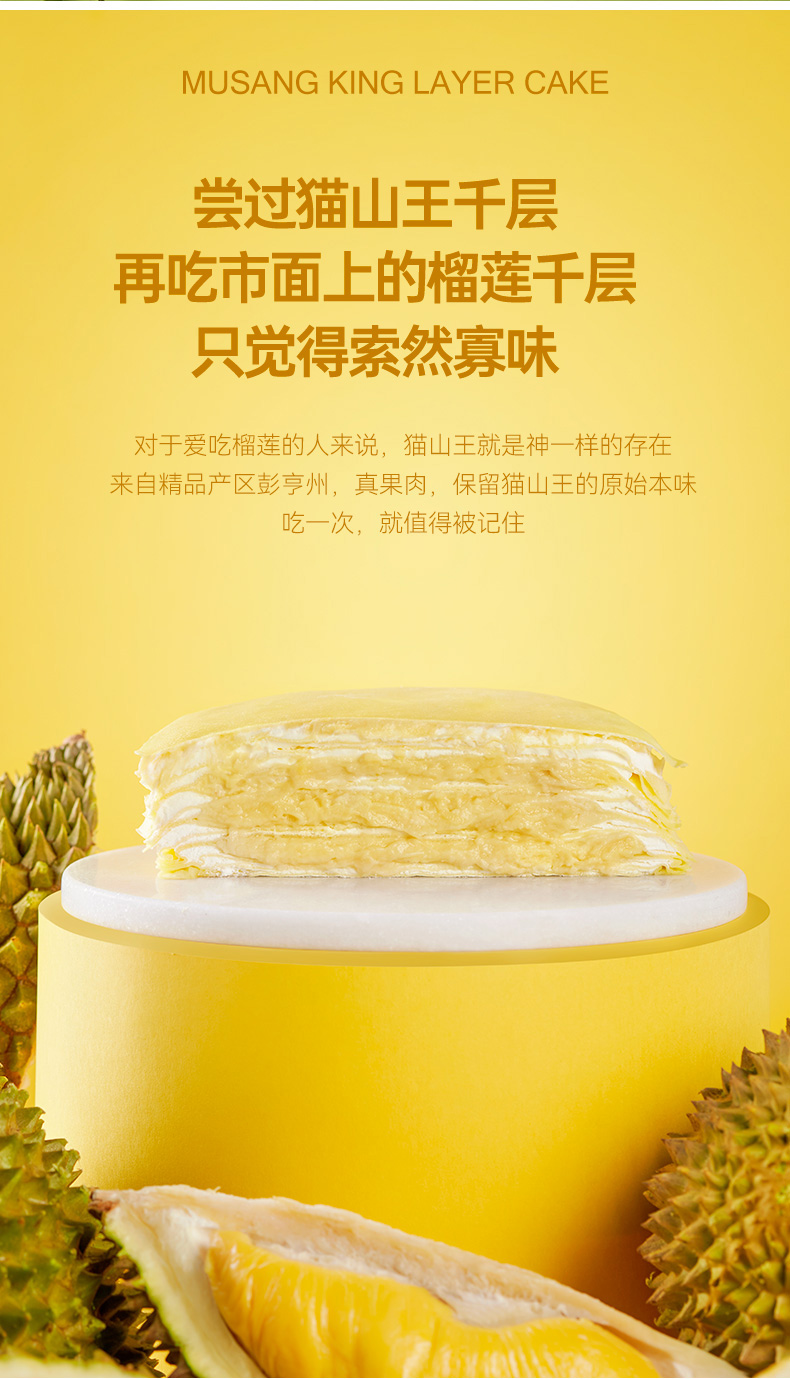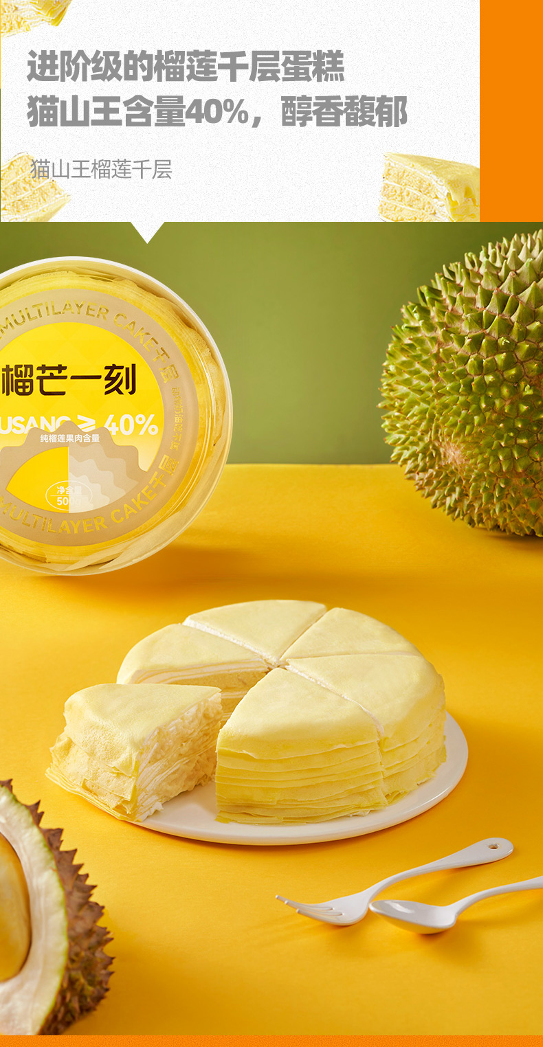 榴芒一刻6英寸猫山王榴莲千层蛋糕500g(单位:盒 ) 黄色 500g/盒