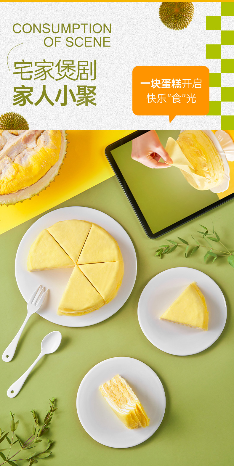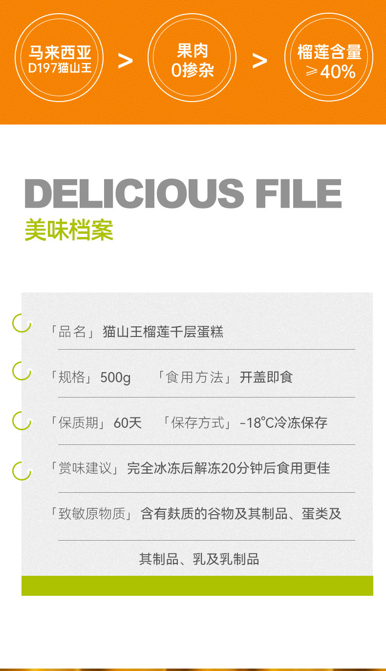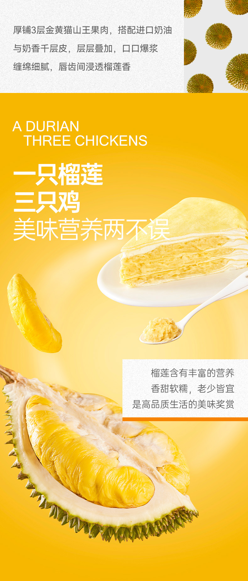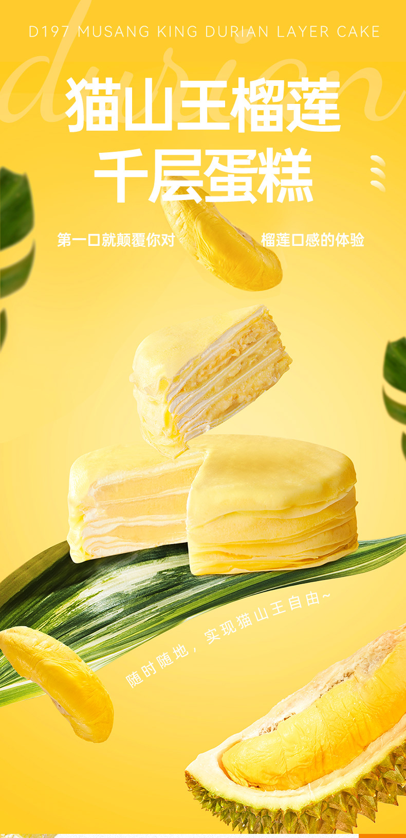 榴芒一刻6英寸猫山王榴莲千层蛋糕500g(单位:盒 ) 黄色 500g/盒