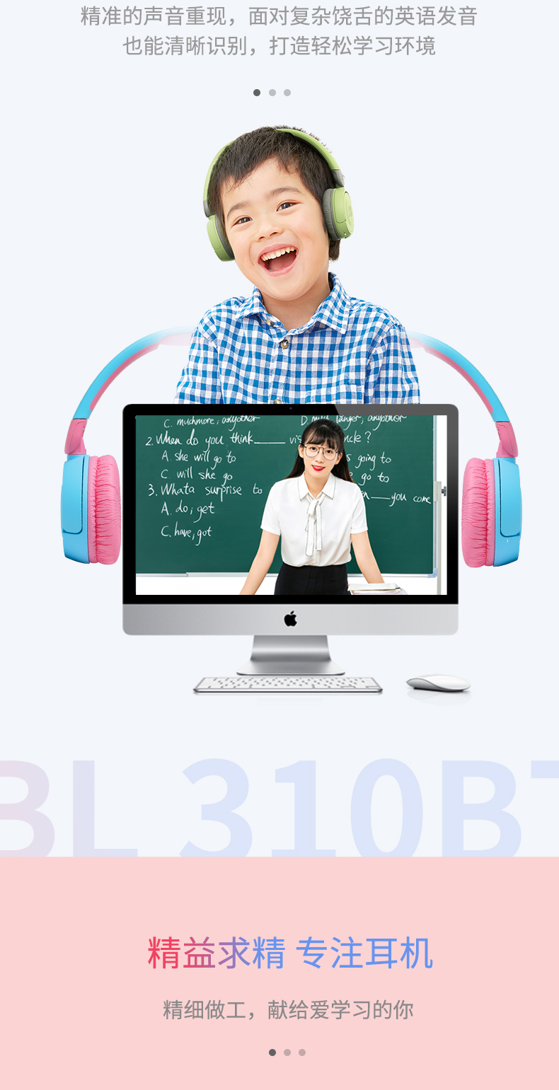 JBL JR310BT 头戴式无线蓝牙儿童耳机(个) 红色