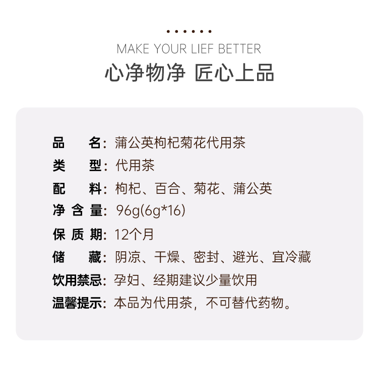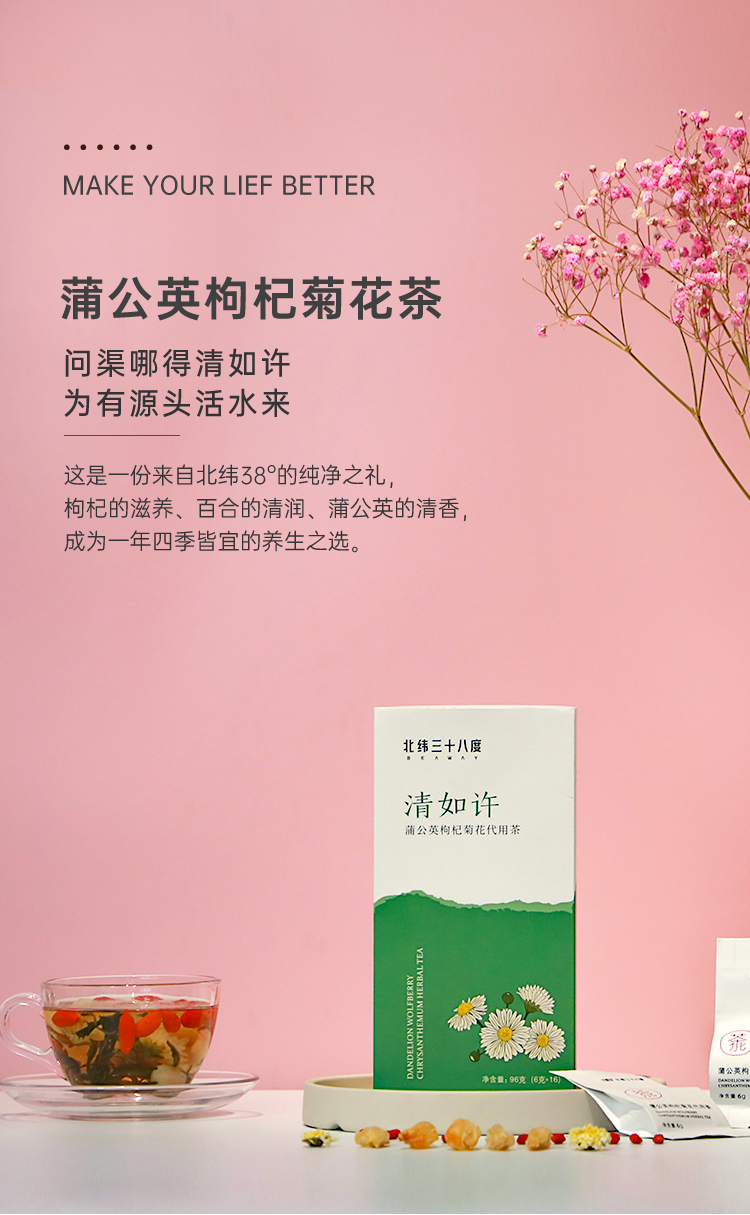 北纬三十八度丨清如许|蒲公英枸杞菊花茶6g*16单位:盒 白色