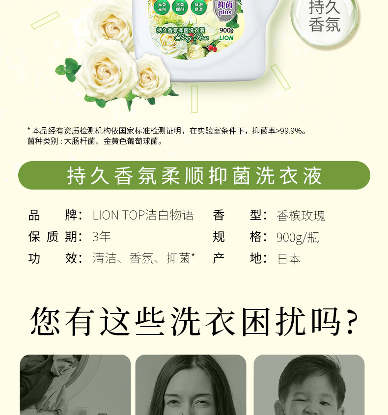 狮王持久香氛抑菌洗衣液香槟玫瑰900g(单位:瓶)