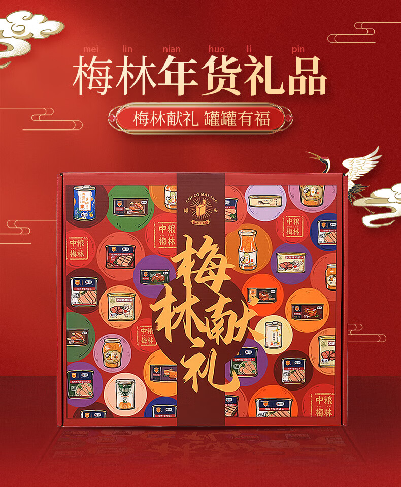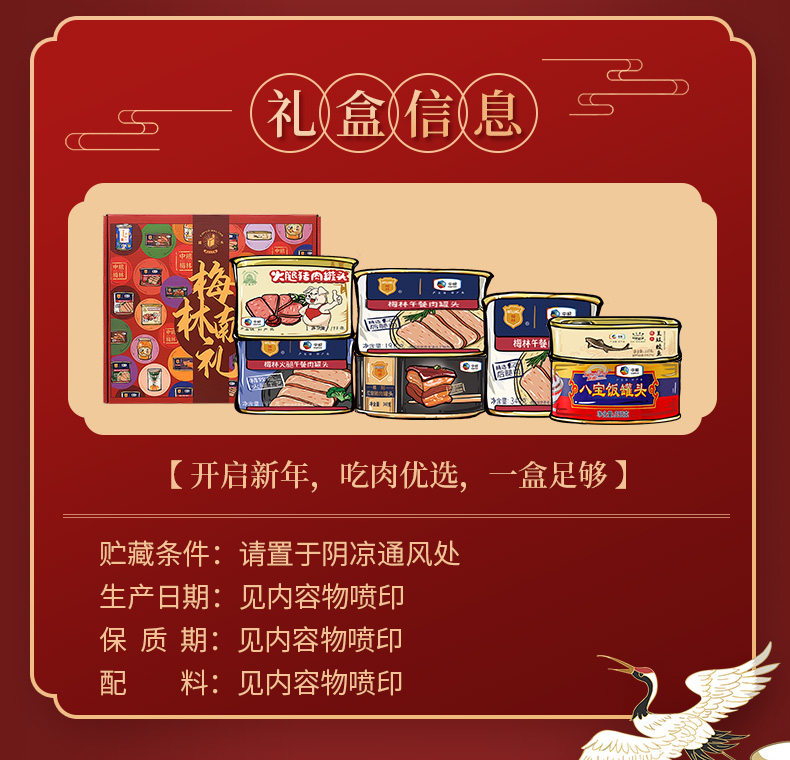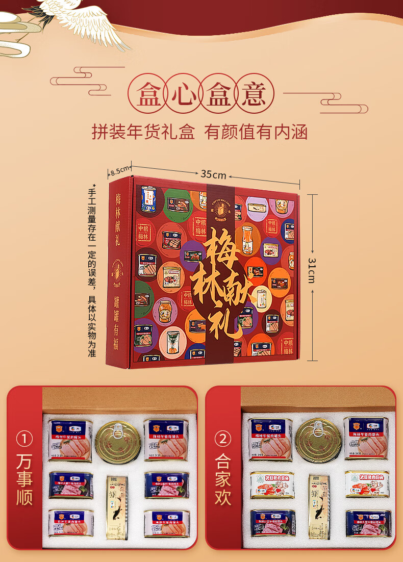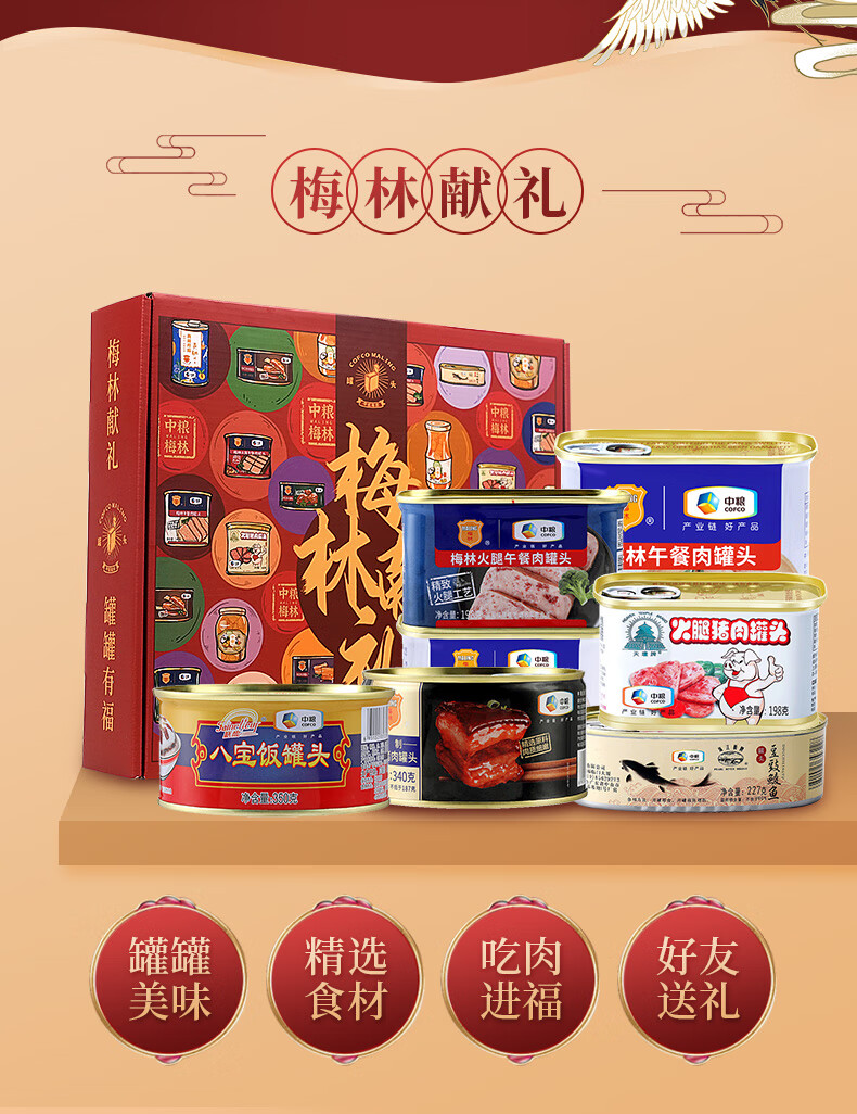 梅林午餐肉礼盒A款 梅林午餐肉合家欢礼盒2039g 彩色