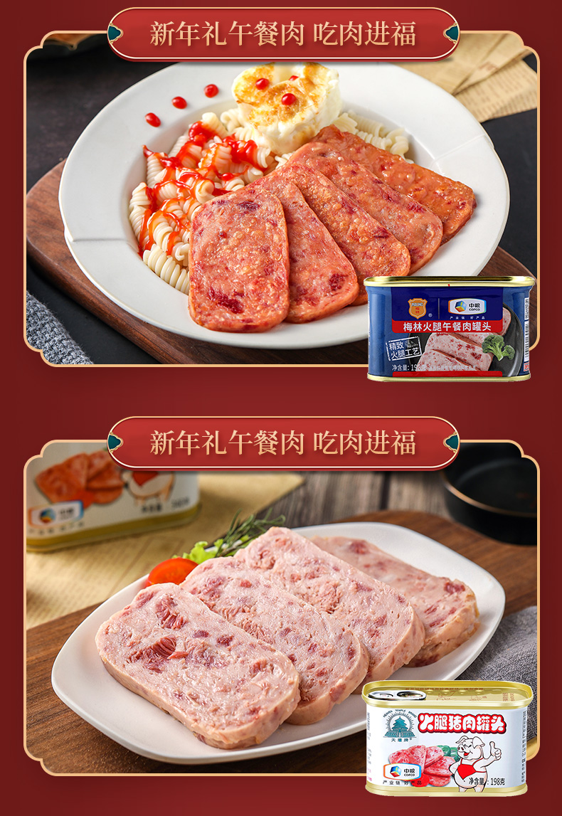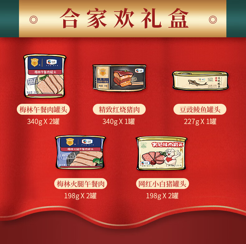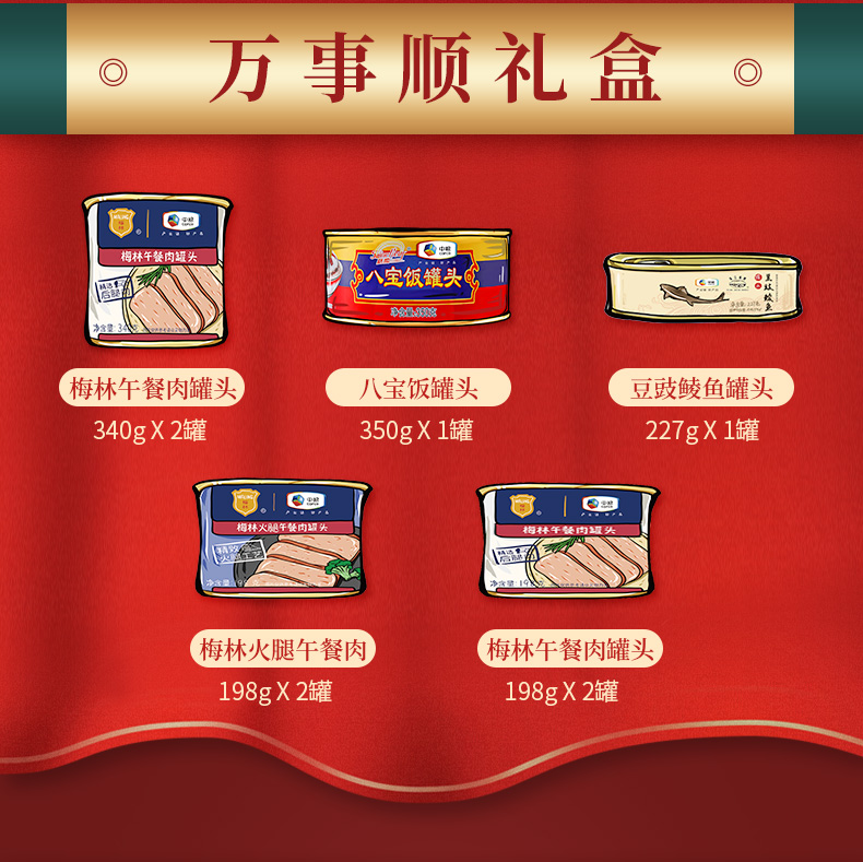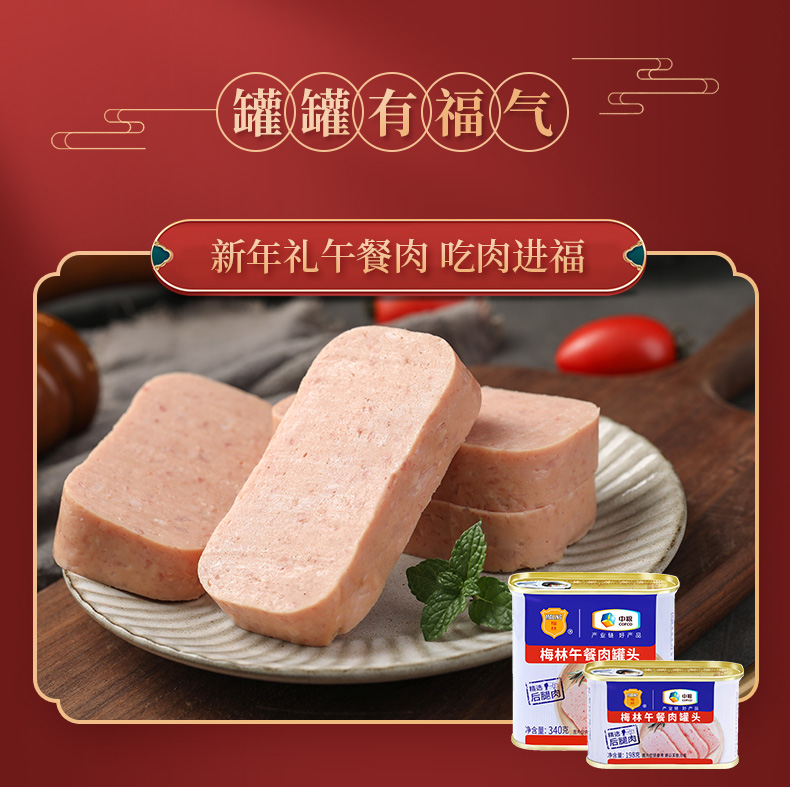 梅林午餐肉礼盒B款 梅林午餐肉万事顺礼盒2049g 彩色